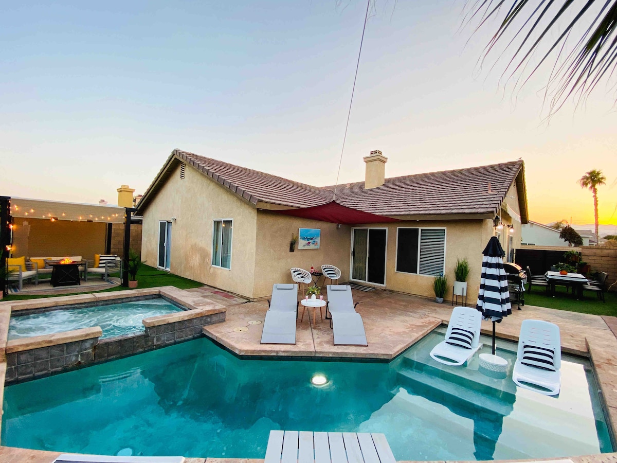 Nestled against the backdrop of the beautiful San Jacinto mountains, our retreat offers a luxury getaway surrounded by palm trees and clear blue skies in the heart of the Coachella Valley. Conveniently located near Palm Springs, Acrisure Arena, Joshua Tree, Indian Wells Tennis Garden, PGA West Stadium Course, El Paseo Shopping District, Agua Caliente Casino, and Empire Polo Club. This sanctuary provides quick and central access to the vast desert wonders and surrounding city experiences.