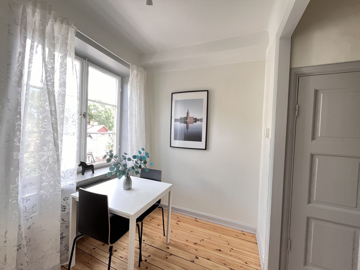 This charming 34 sqm studio is located between the Old Town and the vibrant district of Södermalm. The apartment offers free Wi-Fi, a flat-screen TV, and a kitchenette. You’ll be just a minute away from restaurants, shops, and public transport. Situated in a building dating back to the 1650s, the apartment features high ceilings, beautiful stucco details, and, due to the historic construction, somewhat thin walls. It also includes a dining table with chairs and a modern bathroom with a shower.