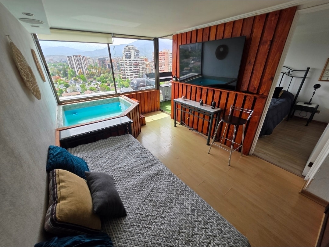 This space is a modern loft-style penthouse surrounded by windows to take in the spectacular views of Santiago. You can rent the entire bedroom space with personal bathroom for two people upstairs master suite, with a beautiful sun terrace to relax and take in the city. You can go walking to supermarket, pharmacy, bars and restaurants and has a great conection to the others country side of the city.