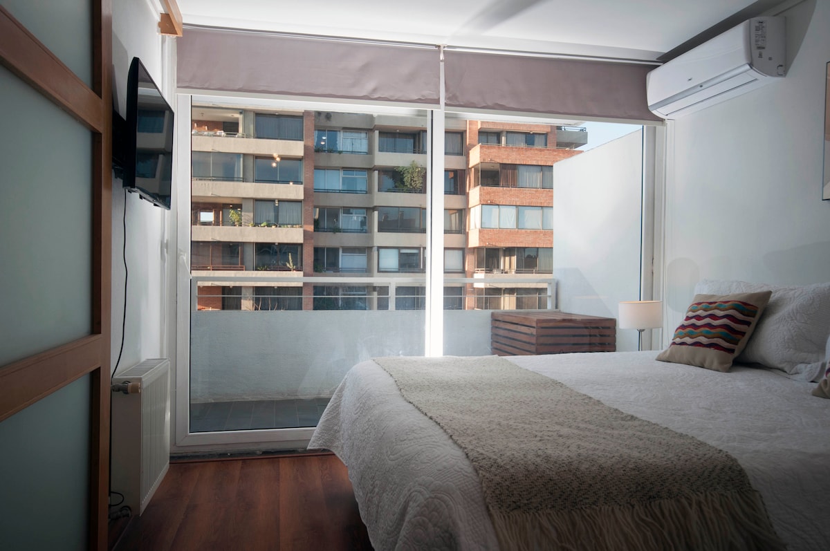 Beautiful and comfortable studio apartment steps away from Parque Arauco and Clínica Alemana. Enjoy a cozy and comfortable stay in Las Condes. Our Hosts are 1 click away! -Surrounded by cafes, restaurants and luxury shops -Comfortable King bed and 2-seater sofa bed -Kitchen fully equiped -High speed internet -Outdoor and indoor heated pool -Gym -Security and controlled access Ideal for: Business or pleasure People looking for a safe and quiet location