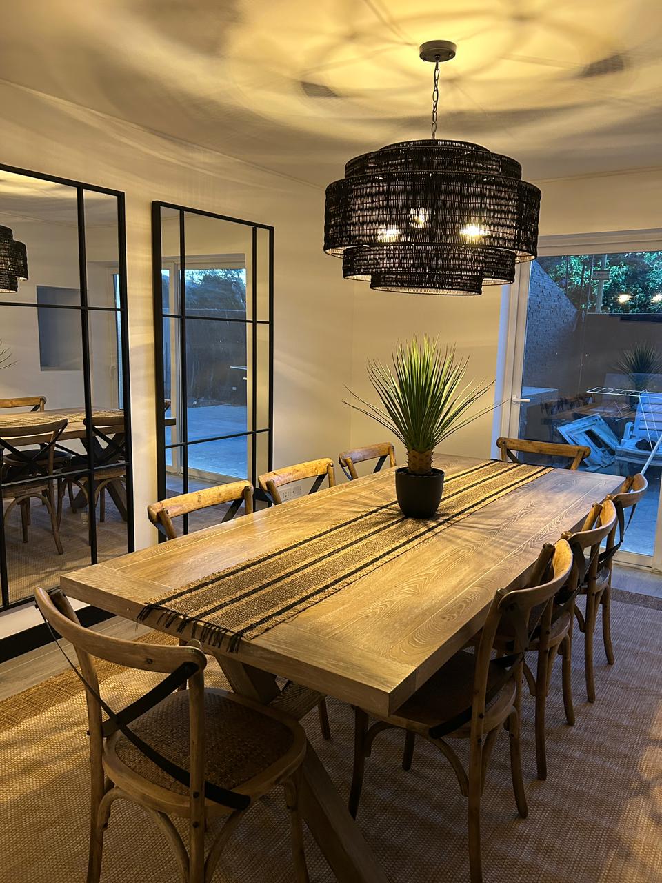 Cómoda casa totalmente equipada en Las Condes, barrio residencial tranquilo y seguro, a pasos de metro, centros comerciales y restaurantes. Ideal para familias y grupos que busquen descansar tras un día en la ciudad o la nieve. Cuenta con 3 habitaciones amplias, 1 estudio con sofá cama, 2 baños, cocina equipada, jardín con comedor exterior, quincho a carbón, Wi-Fi fibra óptica, Smart TV, 1 Aire Acondicionado Portátil, lavadora, secadora, lavavajilla, estacionamiento para 2 autos. ¡Pet friendly!