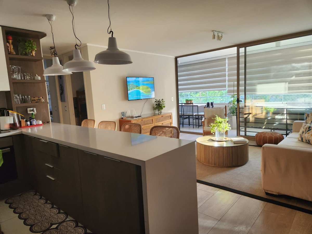Departamento de Alto Standard ubicado en excelente sector de Santiago, a pasos del Parque Arauco, restaurantes y centros comerciales, y próximo a clínicas, zonas de interés turístico y agencias de ski. Vivirán como locales, con impresionantes vistas a la Cordillera de Los Andes y todas las comodidades para hacer que su estadía sea inolvidable. El departamento está pensado como un refugio elegante e inspirador. Se sentirán como en casa y disfrutarán de un espacio acogedor y relajante.
