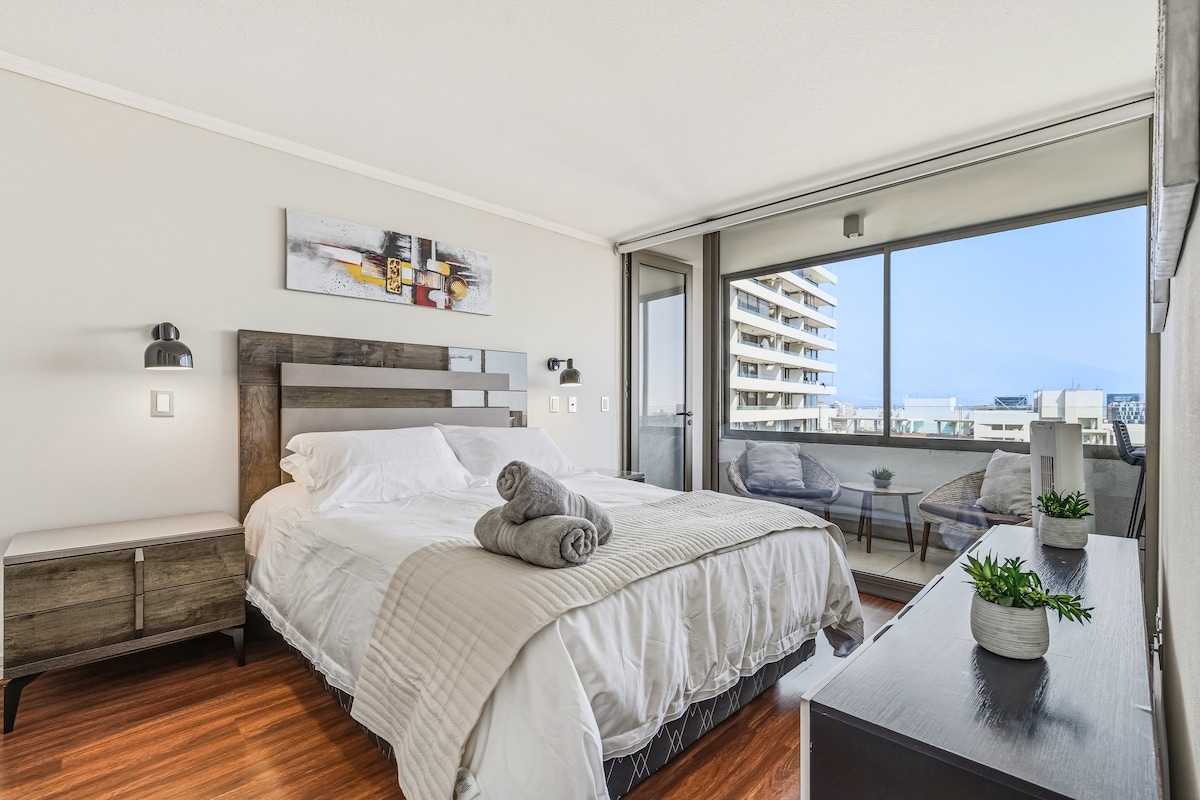 Tu refugio en Santiago. Este encantador departamento es un lugar mágico donde se mezcla la elegancia con la comodidad de sentirse en casa. Con una vista privilegiada a la cordillera, está ubicado en un vibrante barrio lleno de restaurantes y a pasos del mall Parque Arauco y la Clínica Alemana. Es un lugar perfecto en caso de que vengas por trabajo, de vacaciones en pareja o con niños. El edificio cuenta con gimnasio, dos piscinas, quincho para asados en el piso 40 y mucho más.