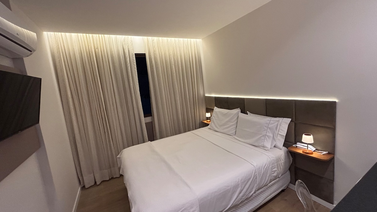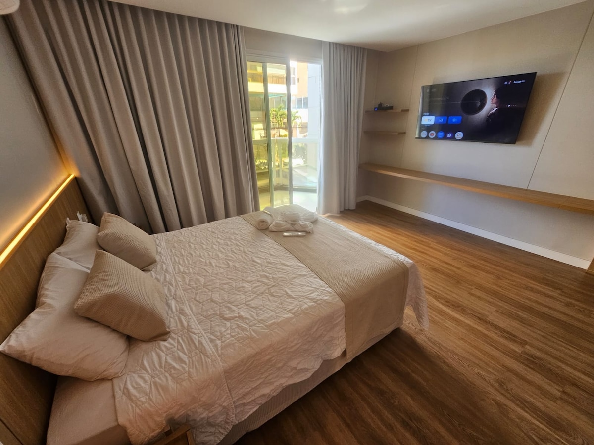 Aproveite Bem-vindo à sua casa longe de casa! Nossas acomodações foram cuidadosamente planejadas para oferecer o máximo de conforto, praticidade e bem-estar. Os quartos são amplos, climatizados e equipados com cama queen size, TV de tela plana, frigobar, cofre e Wi-Fi , piscinas. Algumas unidades oferecem varanda com vista. Ambiente ideal para relaxar após um dia de passeios ou compromissos.Recepção 24h estão à disposição para tornar sua estadia especial neste lugar elegante e sofisticado.