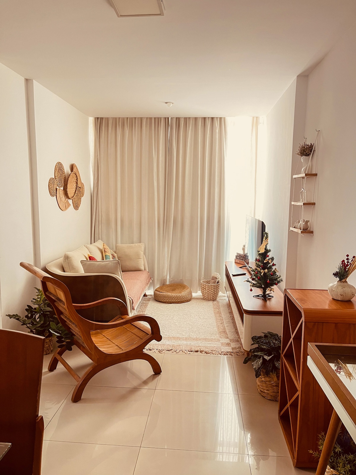 Nosso cantinho à beira do mar é um verdadeiro refúgio de paz e beleza. A luz natural inunda o espaço, deixando o ambiente claro e aconchegante. O som relaxante das ondas quebra suavemente ao fundo, criando uma atmosfera serena. Uma varanda perfeita para assistir ao pôr do sol. A cozinha moderna e equipada, é um convite para preparar deliciosas refeições com ingredientes frescos do mercado local. O quarto é um oásis de tranquilidade, com cama macia e roupas de cama cheirosas.