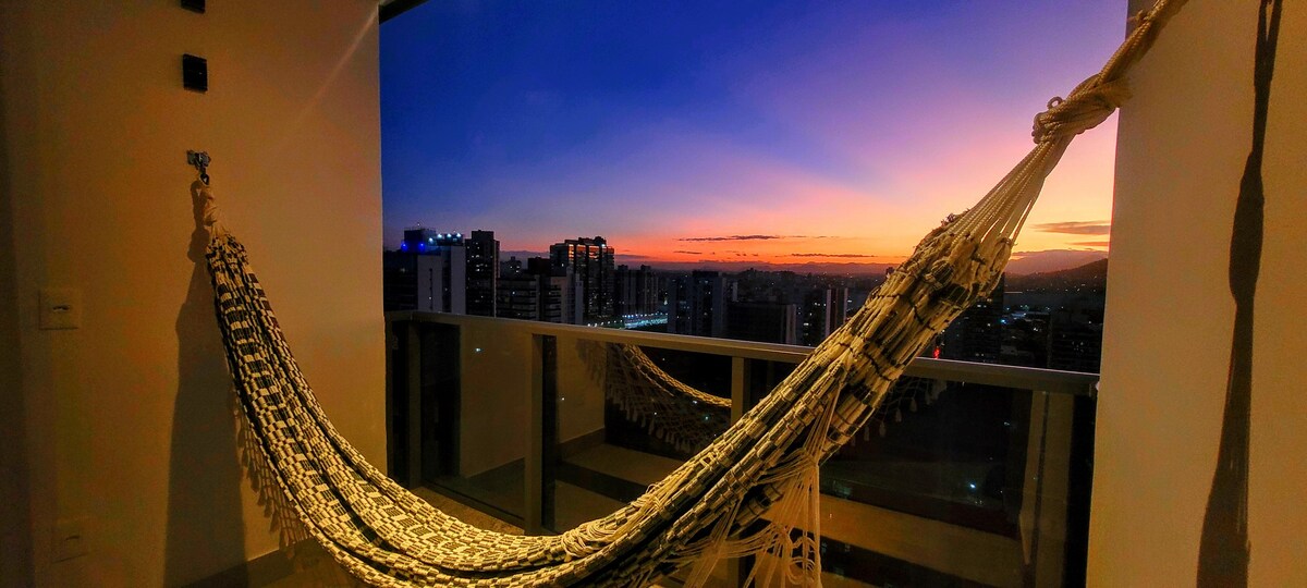 Hospede-se neste lindo loft privativo que possui todo conforto necessário para sua viagem a lazer ou negócios em Vitória Localizado de frente a Praia de Camburi, possui fácil acesso ao aeroporto de Vitória (3min) Oferecendo maior segurança, você terá a disposição a recepção 24h e terá acesso ao clube com piscinas infantis e adulto, sala de jogos, bar e petiscaria e diversas quadras. A T E N Ç Ã O O LOFT COMPORTA BEM 2 ADULTOS NA CAMA KING + 2 CRIANÇAS NO SOFÁ-BI-CAMA. TEMOS BERÇO DISPONÍVEL! =)