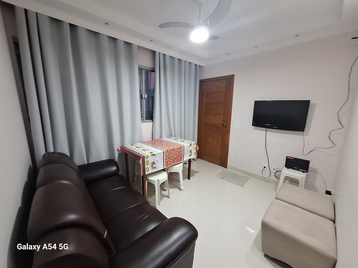 Lindo apartamento aconchegante com tudo que você precisa para ter uma excelente estadia. O imóvel contém um estacionamento e fica a 5 min de carro de distancia (1,9km) da praia de Itaparica. Kitnet 107
