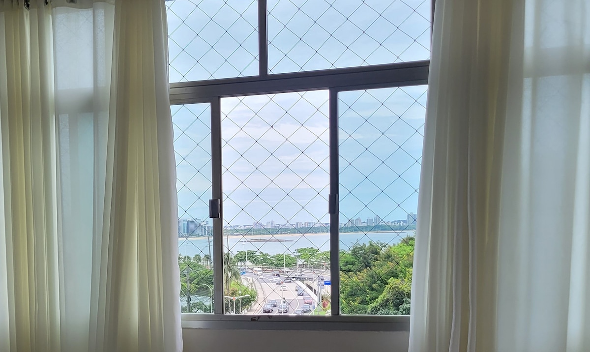Entre no embalo dos sons da natureza ao ficar neste lugar único. De frente para o mar, com a vista mais linda que você poderá vivenciar, tranquilidade e ao mesmo tempo próximo do centro de vila velha, próximo da praia da costa, localizada no morro do moreno ponto turístico da cidade. Ventilação natural, é com cozinha equipada, vista para a terceira ponte. Venha se hospedar e viver essa experiência. ( não permitimos festa)