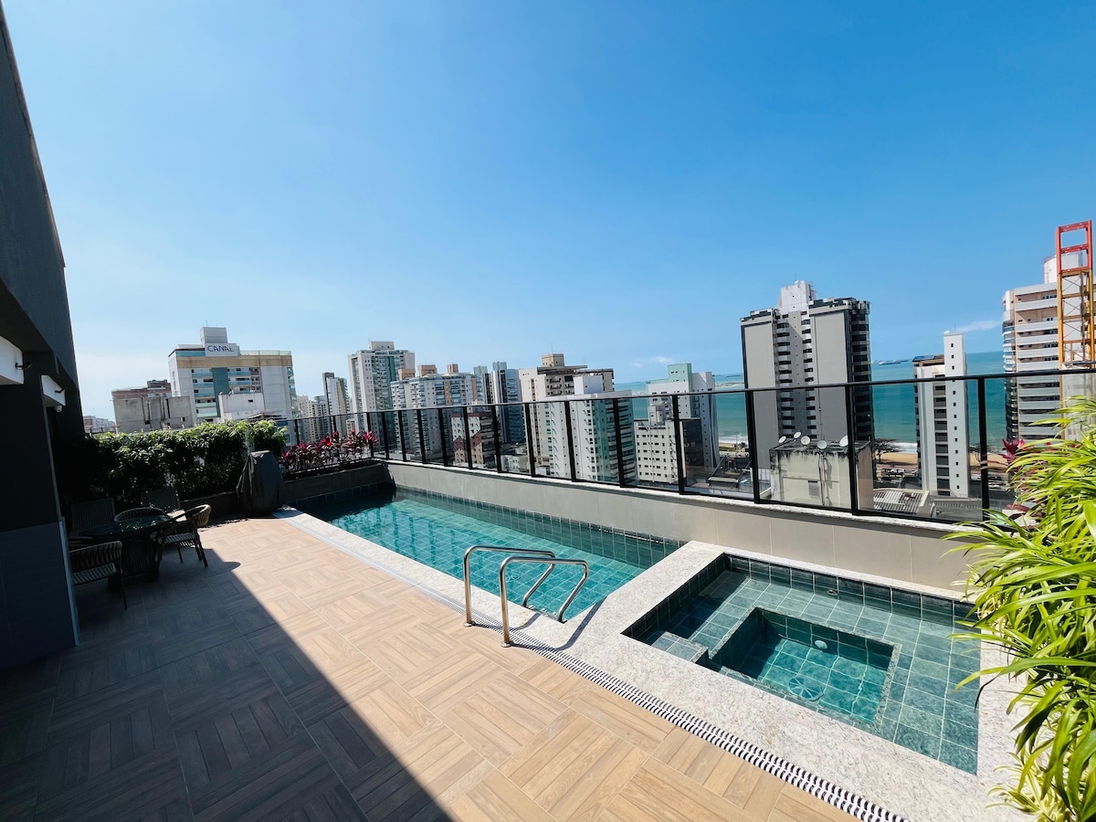 Cobertura com Jacuzzi e vista para o mar com teto solar. Muito espaçosa (65 m2). Melhor ponto da Praia da Costa, a melhor praia de Vila Velha! Cozinha totalmente equipada com utensílios diversos para bar, coqueleteria e taças finas. Suíte climatizada, confortável e aconchegante. Simplesmente a melhor experiência de hospedagem de Vila Velha! Sua estadia por aqui será perfeita! SÓ VEM !!!