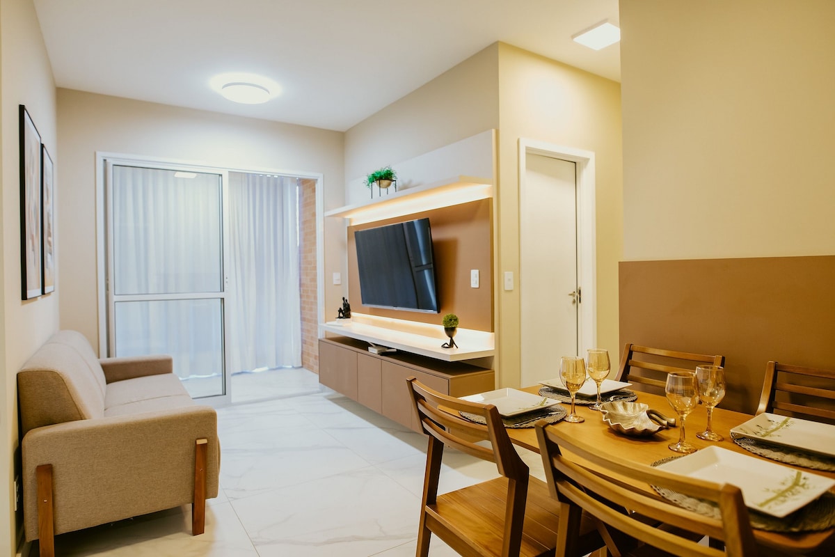 Apresentamos um flat incrível, projetado com atenção aos mínimos detalhes para proporcionar a estadia perfeita, com vista privilegiada para o mar. Tudo foi pensado para garantir conforto e praticidade: • Infraestrutura completa e equipada, ideal para estadias de médio e longo prazo. • Wi-Fi de alta velocidade (500 Mbps) para manter você sempre conectado. • Localização estratégica com diversas comodidades no térreo: mini mercado, padaria e farmácia.
