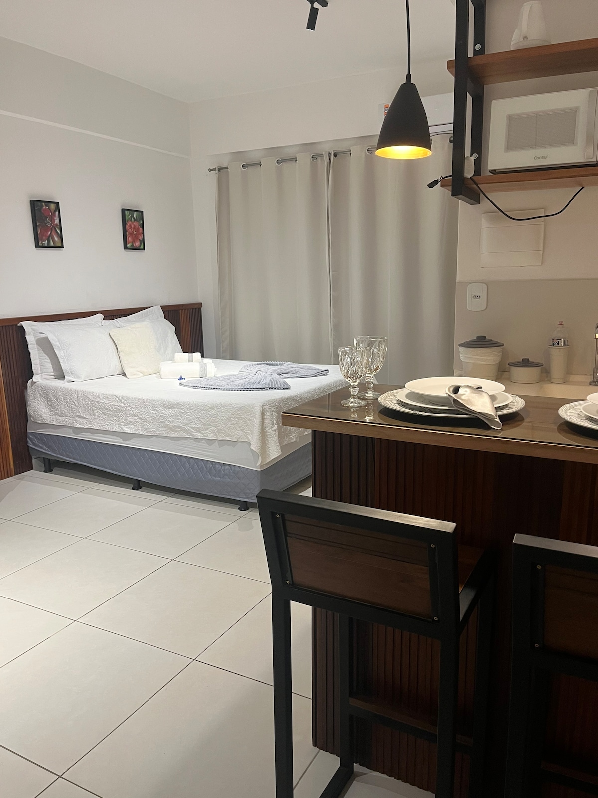 Este apê é tudo que você queria para se hospedar. Tudo é novo e no devido lugar. Livra-te do isolamento do quarto de hotel e de adaptações impróprias, porque é um empreendimento pensado exclusivamente para locação, com comodidades inigualáveis. Oferece atendimento pessoal. Há uma colaborador para servir aos hóspedes com exclusividade. Preza pela hospitalidade, privacidade e conforto. Banho excelente, boa dormida, e móveis de qualidade. Está a 2 km do centro. Mas, perto dos shoppings.
