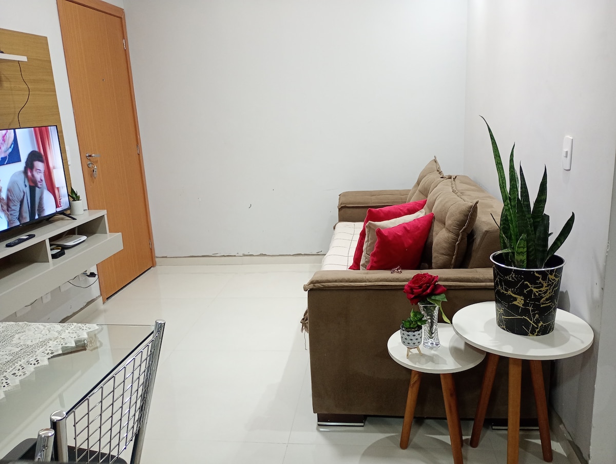 Se você busca conforto, praticidade e segurança, esse é o lugar ideal para a sua estadia! Nosso apartamento fica em um condomínio fechado com portaria 24h, excelente estrutura e fácil acesso a tudo o que você precisa. À 13 minutos do aeroporto (6,6km). O espaço é moderno, limpo e totalmente equipado: Wi-Fi rápido, TV, cama, lençóis e toalhas confortáveis, ar-condicionado e cozinha com todos os utensílios para preparar suas refeições com praticidade. Perfeito para quem viaja a trabalho ou lazer