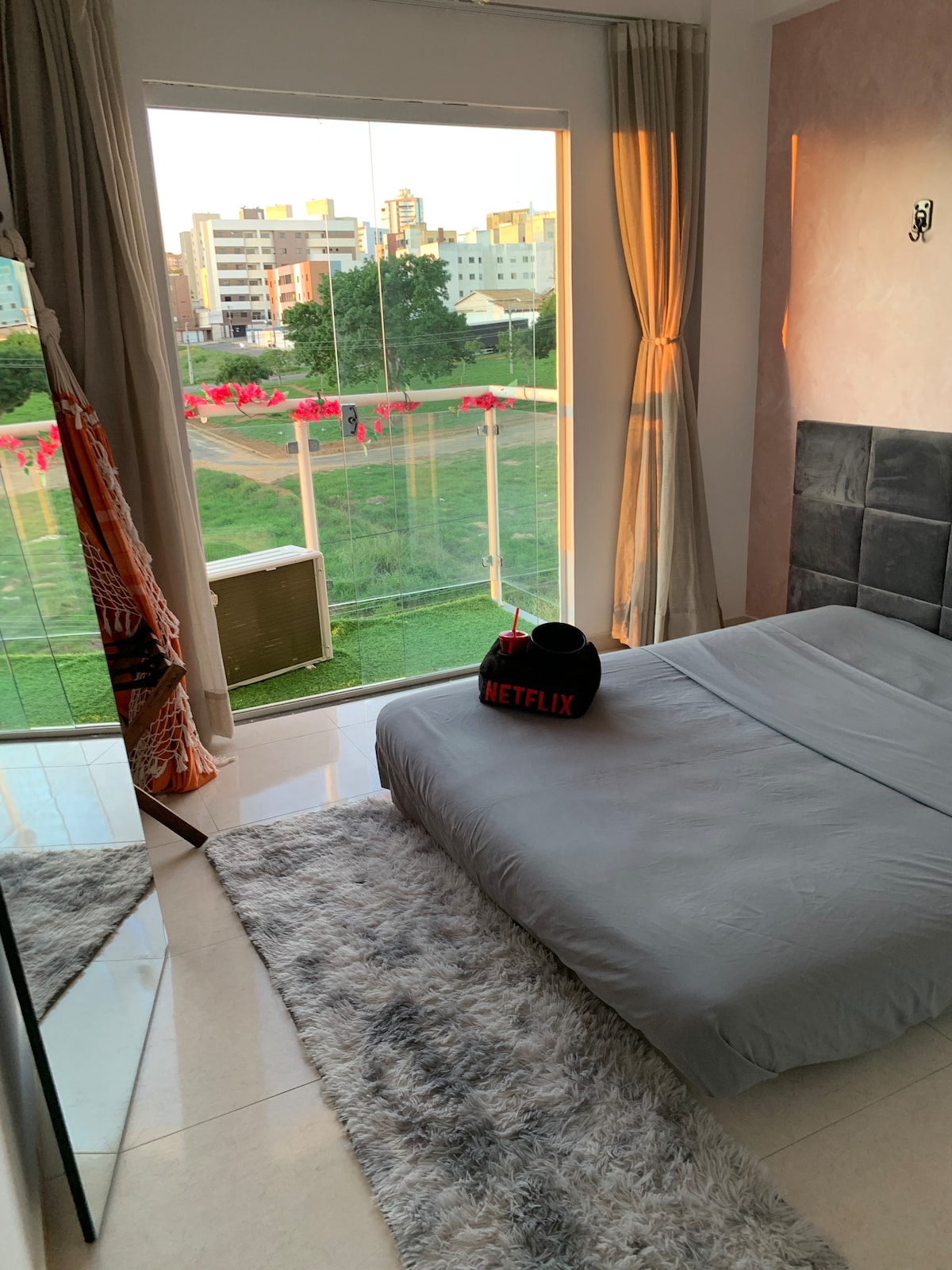 Apartamento c/ lareira, rede e pôr do sol incrível