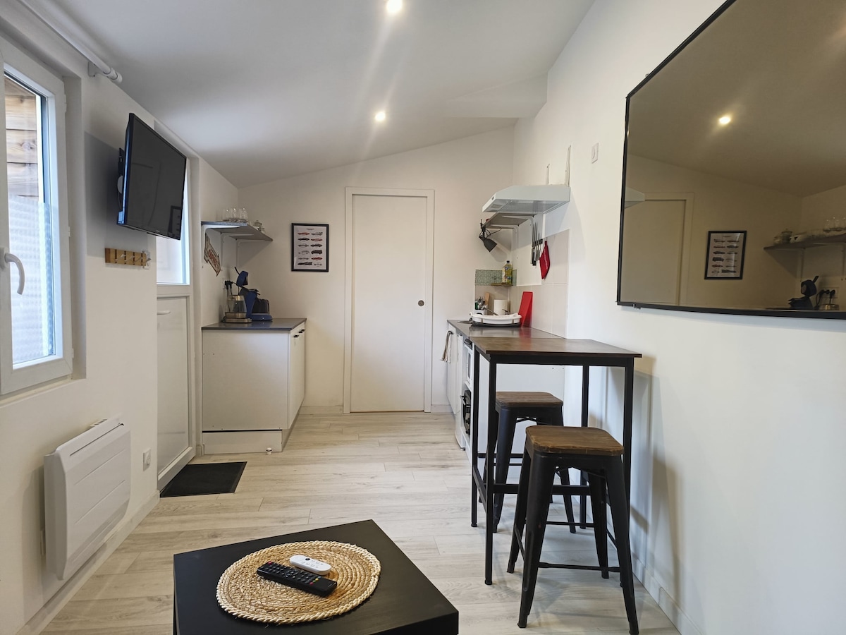 Profitez d'un logement élégant et central. Ce studio se situe au premier étage d’un immeuble très sécurisé et équipé d’un ascenseur. Il se compose d’une entrée avec un grand placard , une pièce principale avec lit , canapé, tv , wi-fi , Netflix ,ainsi que d’une cuisine toute équipée. Une salle de bain avec douche et toilette . Enfin un grand balcon pour profiter de l’extérieur . Il se situe à proximité immédiate d’une boulangerie et à 200 mètres du centre-ville.