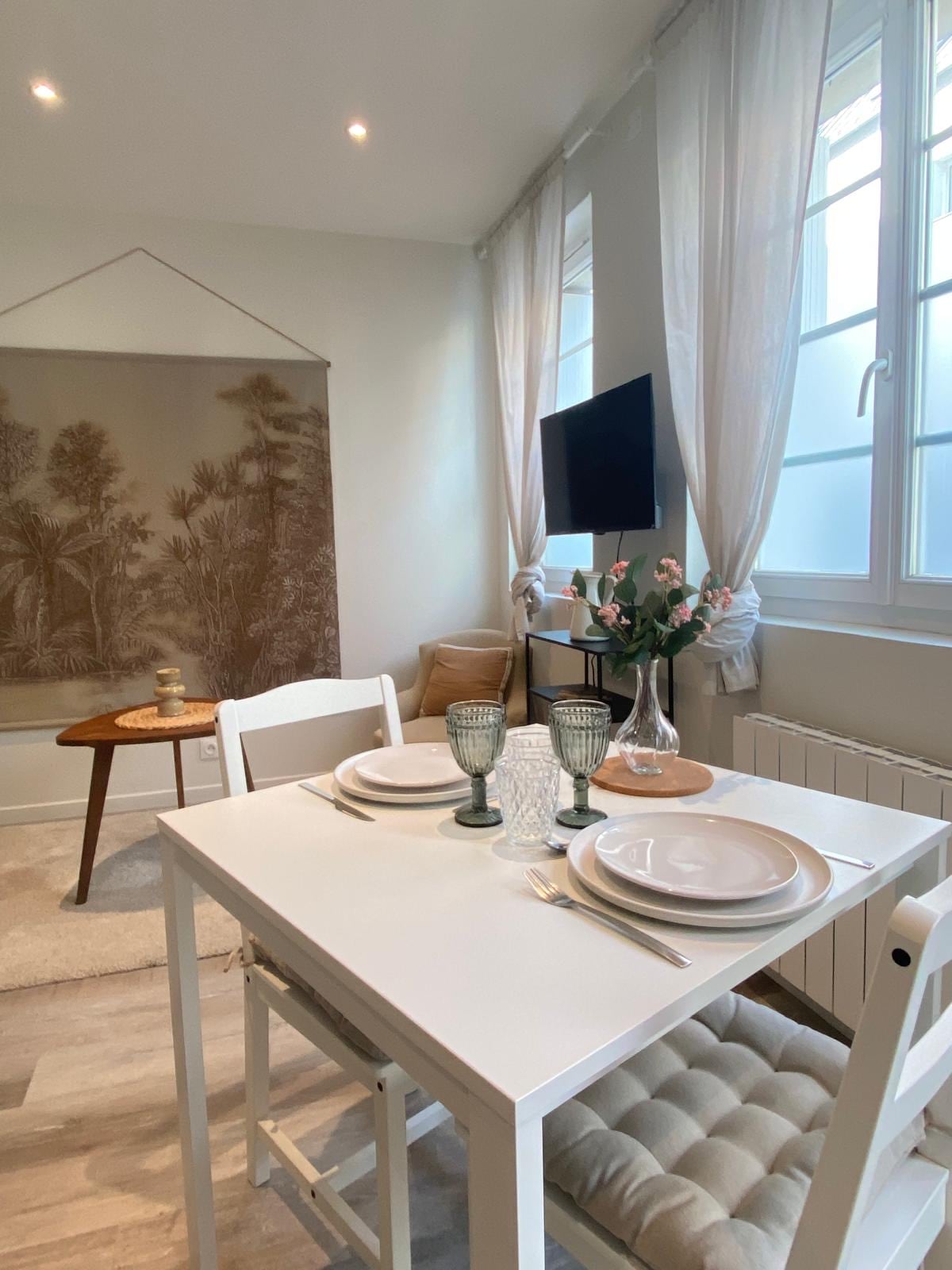 Escapade bien-être en centre-ville – spa privatif & ambiance cosy” Vous pourrez profiter d une magnifique cuisine équipée! Enfin, un canapé lit (120cm)dans le salon, pouvant accueillir deux enfants ou un adulte est à votre disposition. L'appartement est situé en hypercentre près de tous commerces ( notamment près d un carrefour city ouvert jusqu à 22h),et, à 200m du château médiéval. NOUVEAUTE : - Planche apéro 20 euros pour 2 personnes, 25 euros pour 3 et 30 euros pour 4