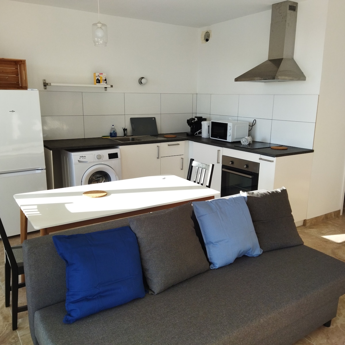 Appartement refait à neuf, lumineux et design, parfait pour 4 personnes avec chambre privée (dressing) et canapé-lit. Cuisine entièrement équipée, salle de bain moderne avec douche à l’italienne et miroir autodégivrant. Balcon avec salon pour vos moments de détente. Parking privé et sécurisé. À proximité de la gare Aix TGV et de l’aéroport de Marseille, pour un séjour pratique et confortable. Tout a été pensé pour votre bien-être !