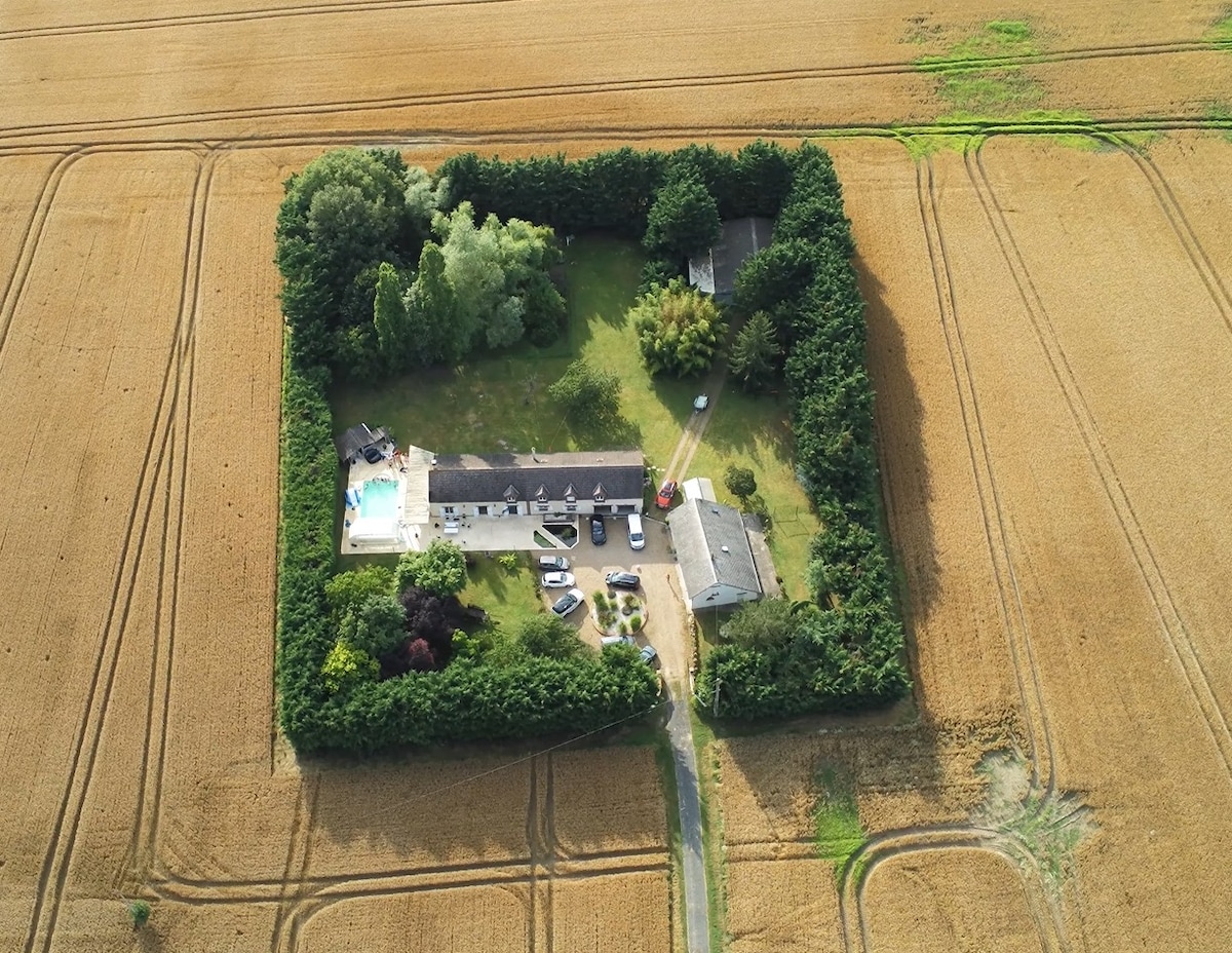 Grande maison neuve, calme et chaleureuse en pleine nature avec tennis et piscine (4,5m x 9m au sel) partagés à disposition. Entrée autonome et grande pièce à vivre avec poêle et vue sur la forêt. En pleine Sologne, elle est à proximité de Chambord (40kms), de la basilique ND de Cléry (10mn) et d'autres ravissants châteaux de la Loire (Meung-sur-Loire et la Ferté-Saint-Aubin à 20mn)