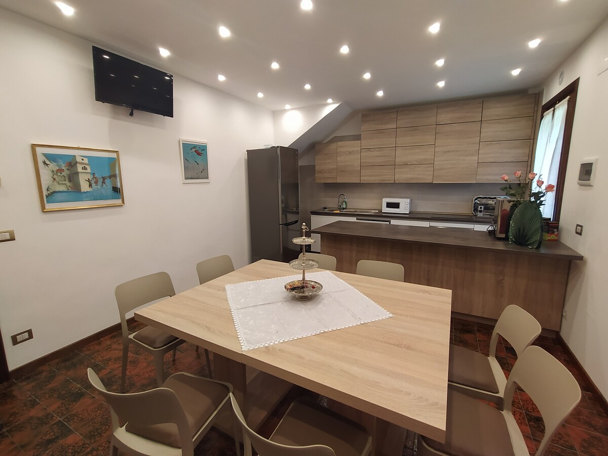 La zona giorno e la cucina compongono uno splendido open space. Nella zona notte abbiamo una camera matrimoniale con armadio e cassettiera, bagno privato con doccia, una seconda camera con letto a una piazza e mezza, la terza stanza adibita a studio ha un divano letto da una piazza e mezza e un armadio a muro. In questa zona troviamo anche un bagno con doccia e una lavanderia. Completano l’appartamento due posti auto uno esterno e uno chiuso. L'appartamento è dotato di condizionatore.