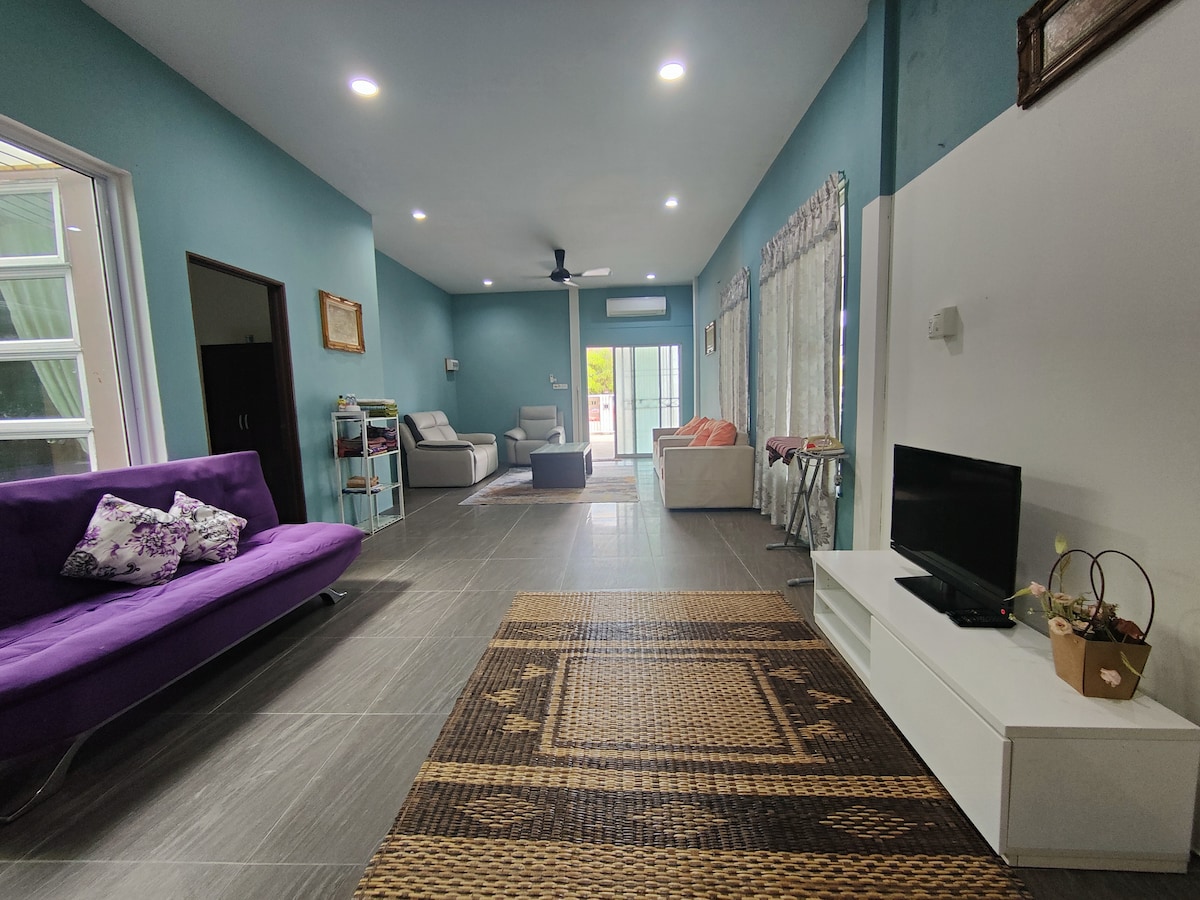 🏡【古晋·简约宽敞舒适家】 欢迎入住这间安静的坡地住宅,宽敞5房设计,适合家庭与好友小团体,营造舒适自在的居住体验。无论短途度假还是长住,这里都是你的安心选择。 ✨ 房屋亮点 5间卧室,3间带独立卫浴,另设共用厕所 配备冷气、快速Wi-Fi与饮水机,舒适又贴心。 免费停车位,轻松停车无烦恼。 现代化安全设施(电动门、自动门锁、电围栏),确保安全无忧。 📍 绝佳地理位置 坐落于凉爽安静的坡地社区,距离市区主要景点仅数分钟车程: 猫像、圣彼得教堂、河滨公园、BCCK博物馆、砂拉越会馆、The Spring购物中心等,生活与休闲便利兼备。 🌿 这里不仅是住宿,更是家的延伸。清晨推开窗,迎接轻风与阳光;夜晚安心休憩,享受难得的宁静。无论是家庭团聚还是好友聚会,这里都能满足你的需求。 🚗 建议自驾,便于探索周边美食与文化,体验古晋独有的魅力。
