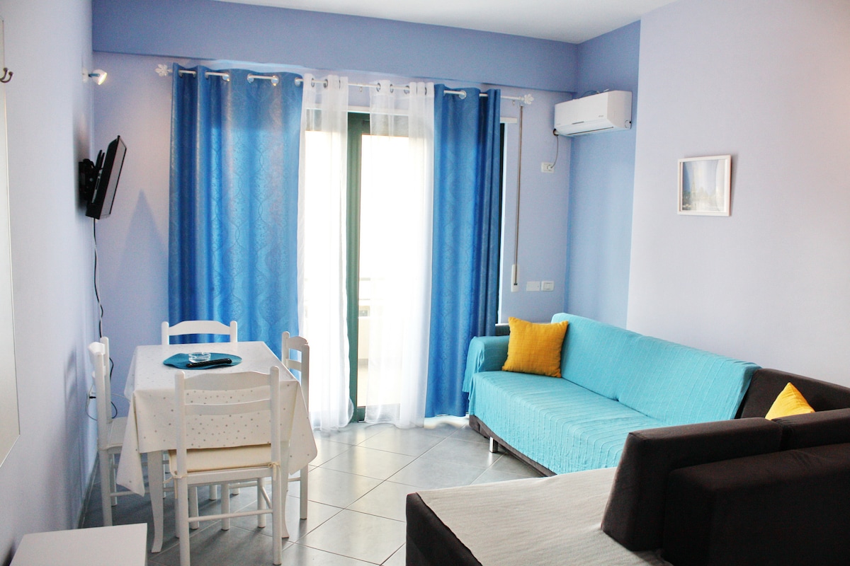 Beautiful new built, 2min from the sea, overlooking a secondary road so you’re far from traffic noice and pollution. You can enjoy breakfast in the sun in the balcony! There’s a living room, fully stocked kitchen, bedroom with king size bed (+ a folding bed), desk and fast Wi-Fi. There’s bars, restaurants and supermarkets literally by the building. You can take nice long walks on the seaside or cycle across the whole city. 50min drive from Dhermi. Good bus connection to Tirana and Saranda