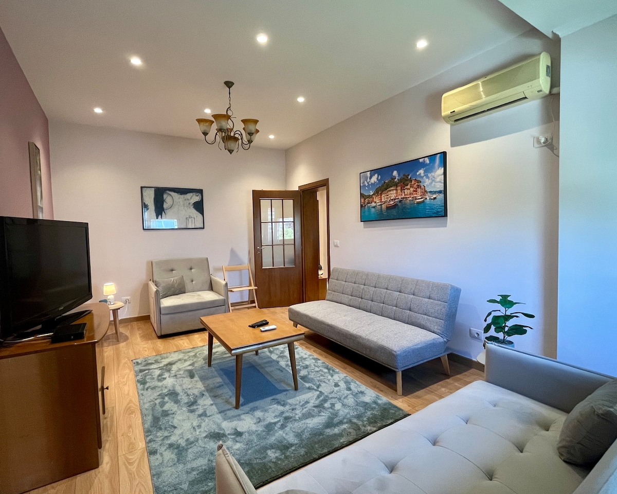 Located by the hill, fresh & clean air. A quite place for families, 5 minutes' walk from the sea and promenade Lungomare. Fully furnished apartment with all the necessities to make you feel comfortable and relaxed. It has an elegant style and all the comforts. 2 bedrooms, 2 bathrooms and 2 balconies one of which is 20 m2, to enjoy dinner while watching sunsets over the sea as well view of the mountain close by. All the restaurants, bars and supermarkets are in walking distance only 5min walk.