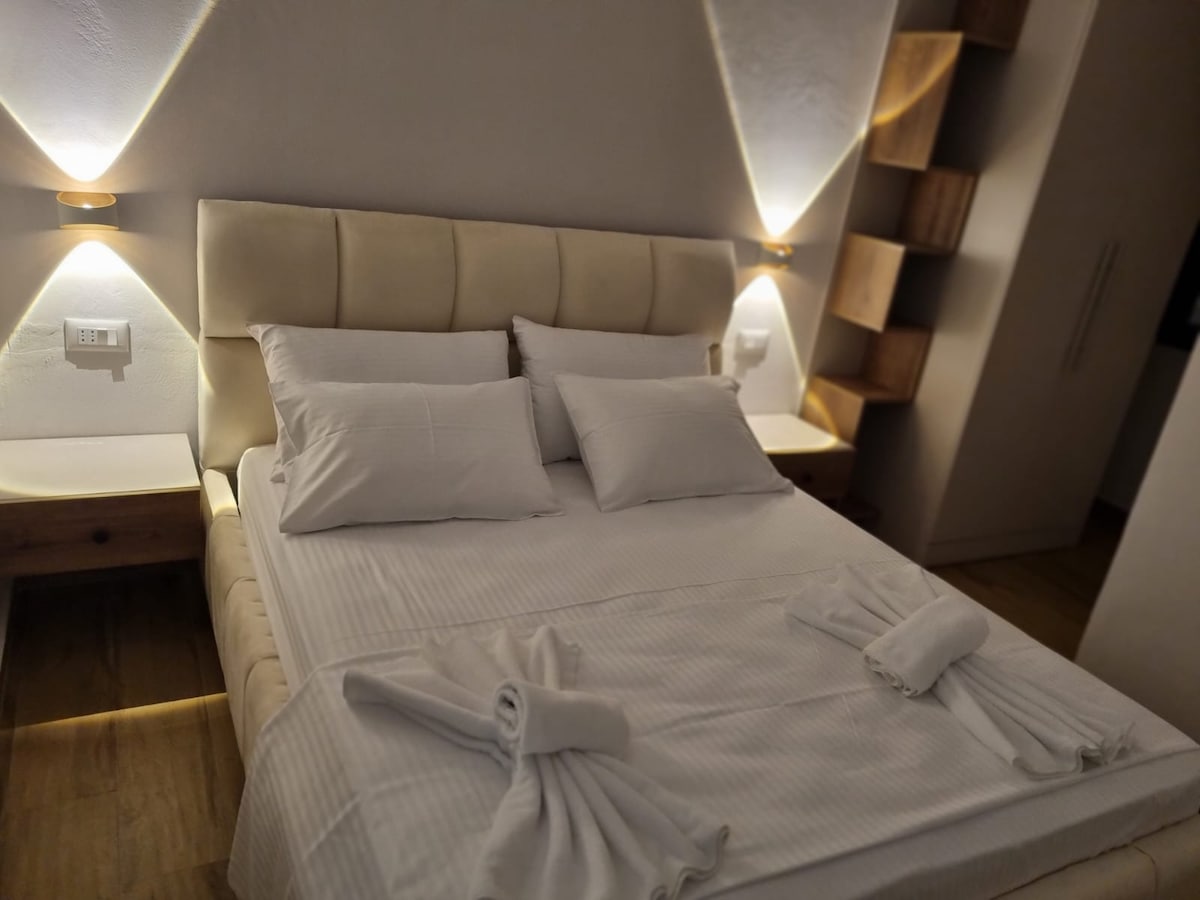 Benvenuti nella nostra casa con vista mare, a soli 10 minuti da Valona! Perfetta per gruppi fino a 5 persone, dispone di 2 camere da letto e 1 bagno. Bagno condiviso. Accesso Wi-Fi e parcheggio gratuiti. Check-in flessibile. Vicina alle spiagge e alla città. Regole: no fumo, rispetto del vicinato, pulizia al check-out. Non vediamo l'ora di ospitarvi per una vacanza indimenticabile!possiamo anche offrire la colazione e cena tradizionale a un costo aggiuntivo! Si richiede massimo silenzio.