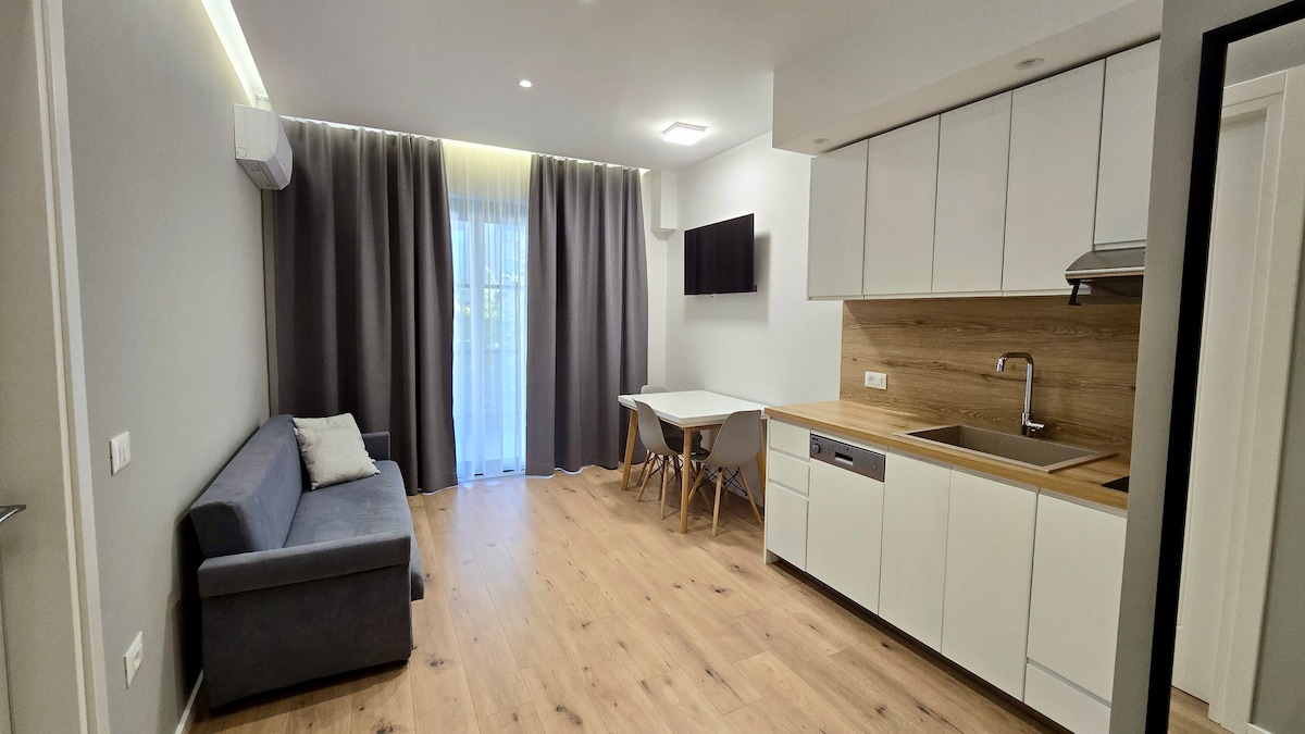 Come and enjoy Vlora the way it’s supposed to. Amazing location, you will be close to all popular bars, restaurants and anything else you might need. 5 minutes on foot from the beach. 2nd floor room, great balcony with a kitchen perfect for a quick breakfast. Newly furnished and stylish for the perfect stay. Free parking is also included.