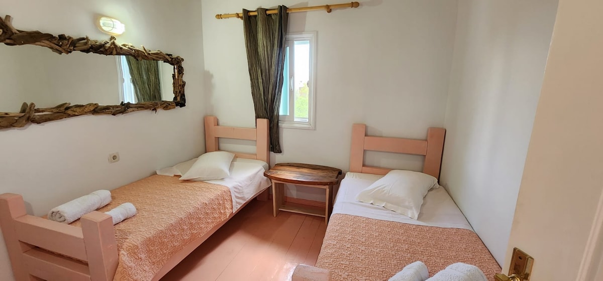 A charming and stylish top floor apartment with breathtaking views - the panorama of Karaburun over the bay and captivating Llogara view at entry. Enjoy the utmost comfort and privacy with a queen bed adorned with Greek thick cotton sheets and a delightful canopy. The living room features two single beds, perfect for lounging or sleeping, designer furniture, the beauty of both sunrise and sunset, and a gentle wake-up call of chirping birds. Your unforgettable stay awaits in this retreat.