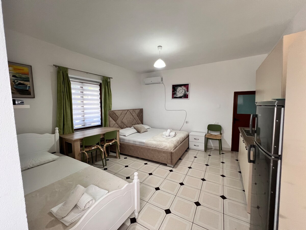 Welcome to our lovely apartment. 1-bedroom apartment, only 7 min away by car from "Lungo Mare" destination and the city center. The unit comes with AC, Wi-Fi, and free parking. Our Airbnb is within driving distance to several popular restaurants, coffee shops, and beaches. An ideal place for enjoying all the city has to offer without being too far away from the major destinations in Vlore.