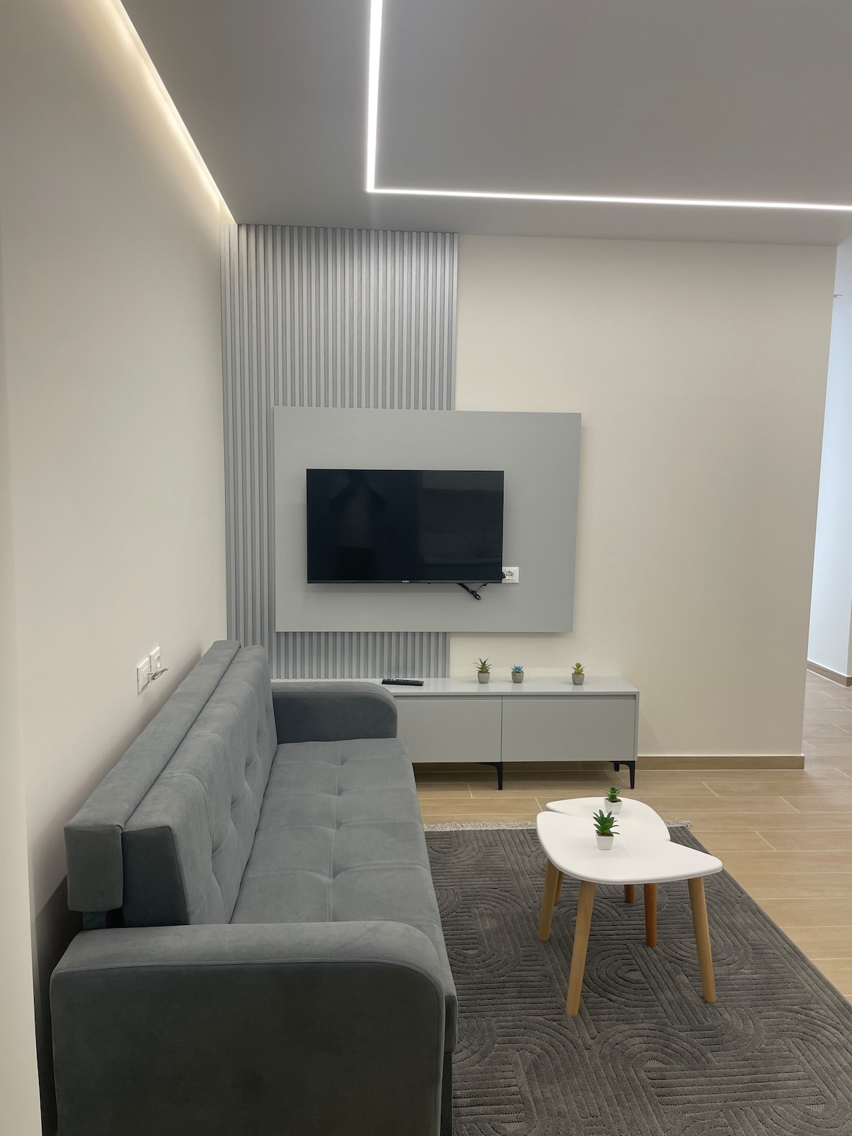 Experience the ultimate in modern luxury at our beautifully furnished apartment, located just 50 meters from the pristine shores of Vlora. Featuring stunning window walls, our apartment offers a breathtaking backdrop for your stay. Enjoy a fully equipped kitchen, high-speed Wi-Fi, air conditioning, and a spacious living area perfect for relaxation or entertaining. Situated in the vibrant Lungomare area, you'll have easy access to the best dining, shopping, and entertainment Vlora has to offer.
