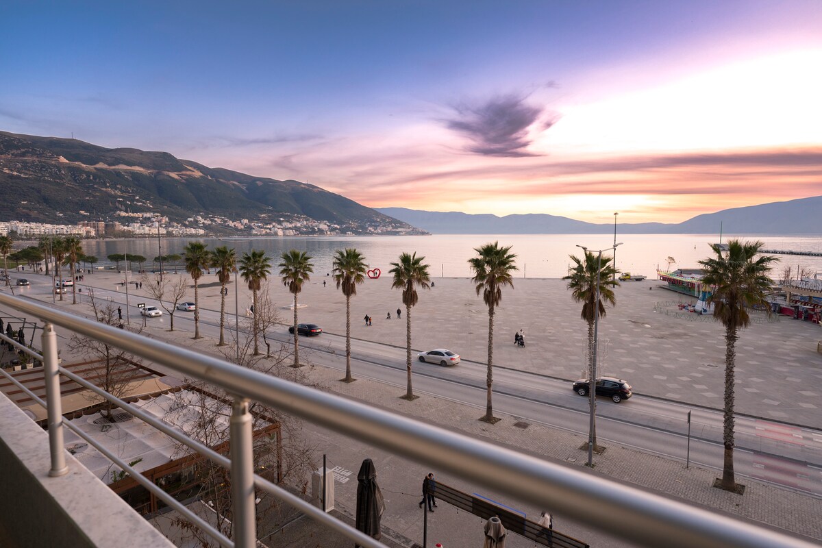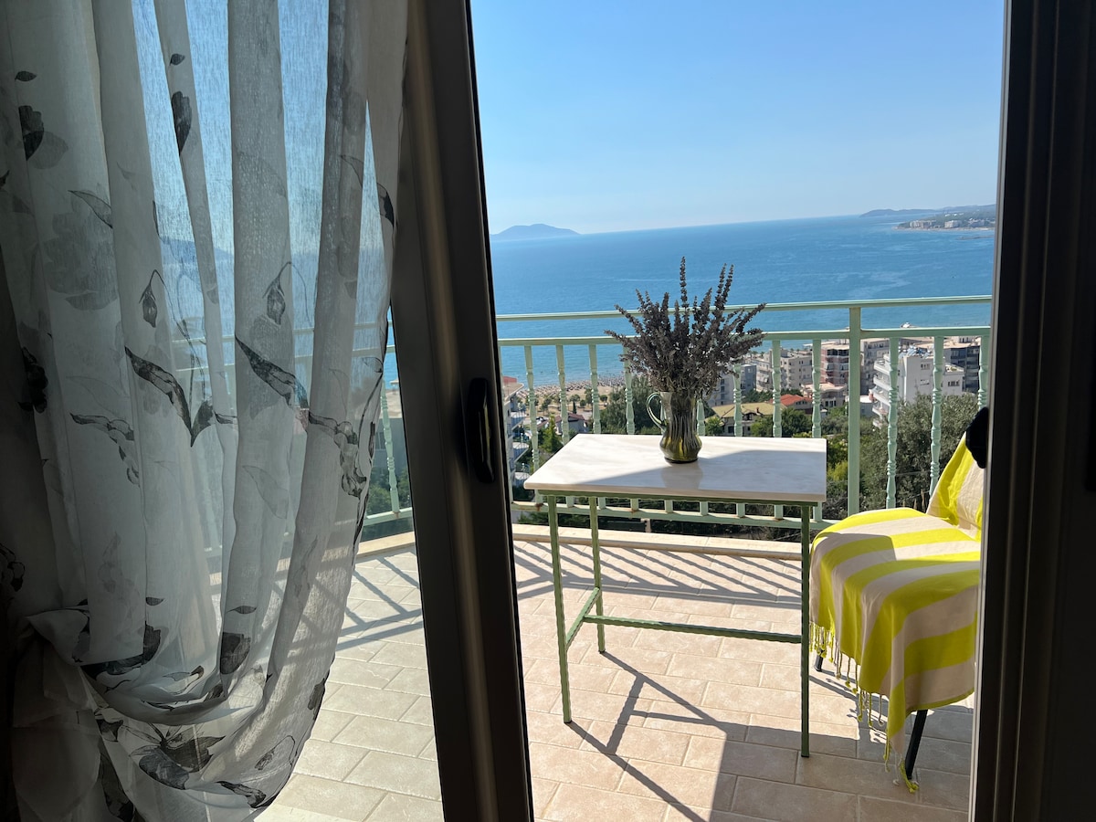 Closest apartment to the beach in Vlorë you will ever find! Perfect for families and couples. With stunning panoramic views from the 2 balconies and all the luxuries like AC, fully equipped kitchen, Smart-TV, free bicycles etc. to give you a memorable holiday! Most apartments in Vlorë are separated from the sea by a busy, dangerous and load road. Only a handful of places like this one have the luxury to have a road behind the building instead of in the front. What makes this place superior!