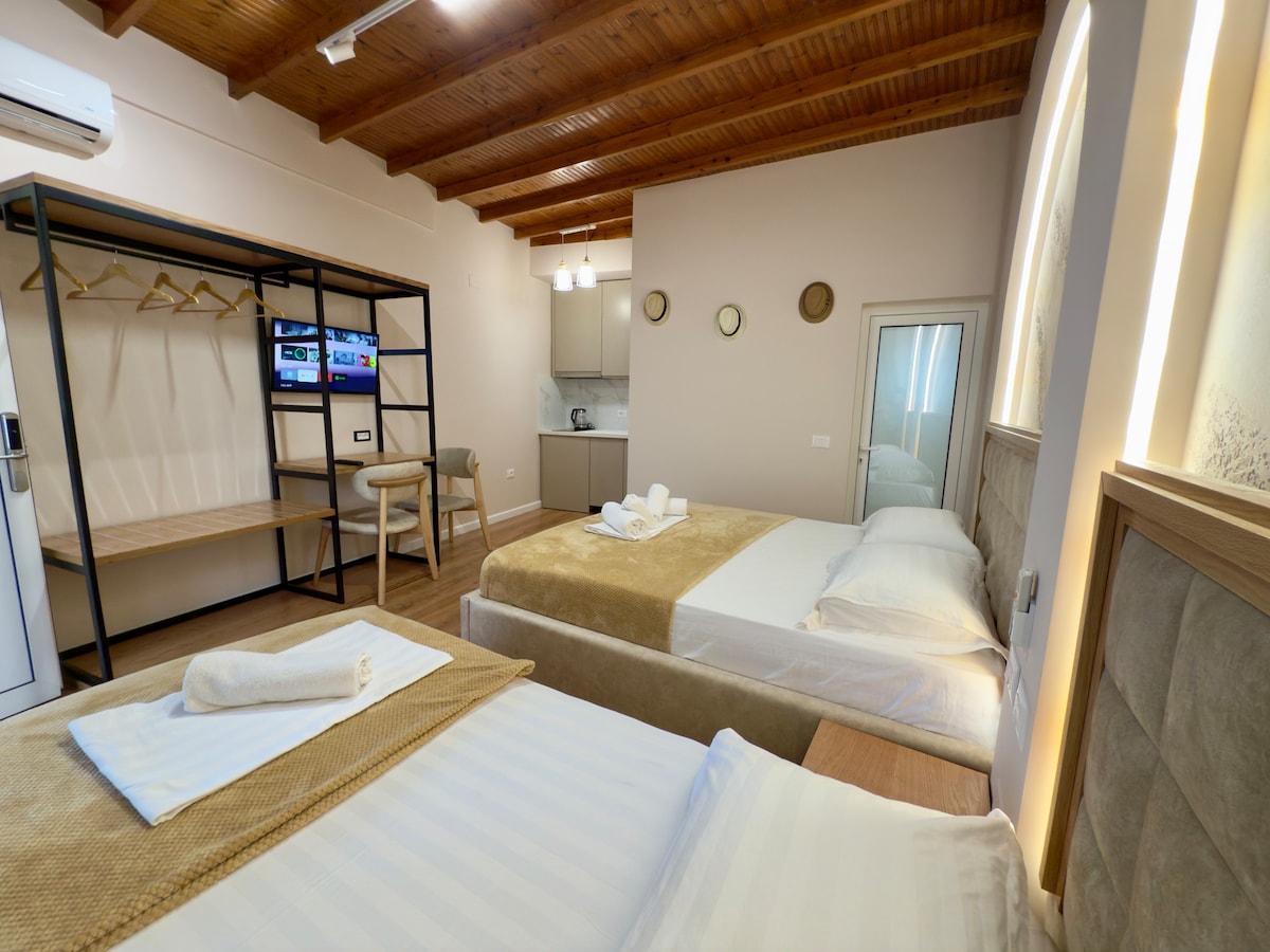 Promenade? Your walk is few steps away. In the heart of the Vlora, featuring beautiful views of the city and the bay. Spacious, clean and stylish. You want your time to be valuable? All you need to do is a 2 minute walk and then you are in the seaside or in the center of Vlora. It's your decision! We provide transportation at a good price!!
