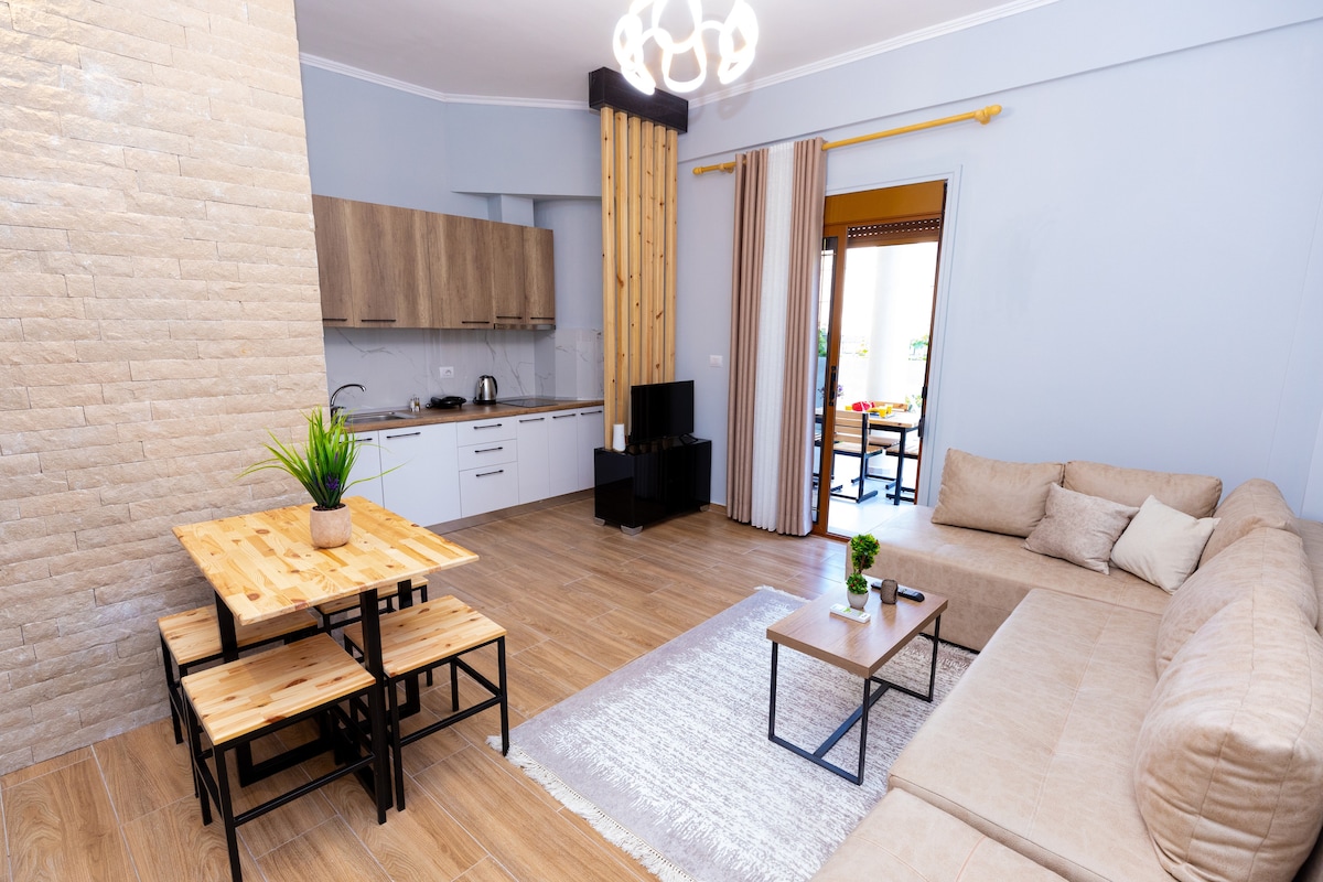 128m2 luxurious villa with a large pool & access to the beach, next to Marina Bay resort in Vlore. A premium state of the art villa, fully furnished in the heart of the Albanian Riviera in a gated residence. The villa is ideal for families, groups & couples. Feel like home in a safe & luxurious environment with all the premium amenities you need for a great stay. Enjoy your privacy, as well as easy access to restaurants, bars, markets & Vlora city center (5-10 min drive).
