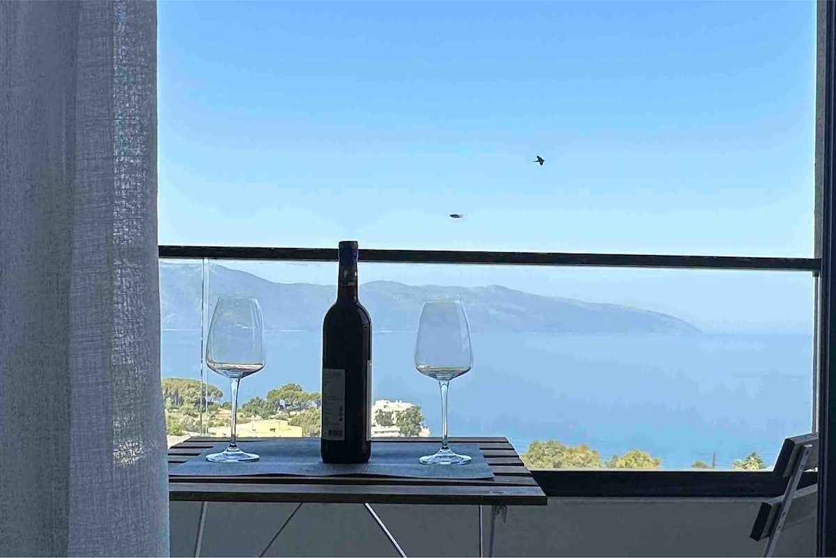 Welcome to our beautiful hilltop studio, nestled by “Uji I Ftohte” in Lungomare. Enjoy a fully equipped kitchen, a cozy sleeping area, a modern bathroom, and a spacious balcony that offers breathtaking sea views. All the beaches, cafés, markets, and restaurants are within 5-15 minutes of walking. The bus stop, located only 4 minutes away, offers easy access to Vlora's vibrant city center for just 35 cents. Self-check-in and check-out make your stay even more convenient.