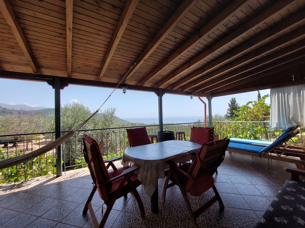 A beautiful house, which is located in a quite and peaceful place. With its big balcony-veranda it is the ideal choice for you to sit, relax and enjoy the beautiful view of the sea, the Castle of Himara and the olive ground which surrounds the place. You can reach the nearest beach (Livadh beach) in 10 minutes on foot or just 2 mins by car. At the same distance there are supermarkets, restaurants and other places to have a drink. It's the perfect choice for either families or friends.