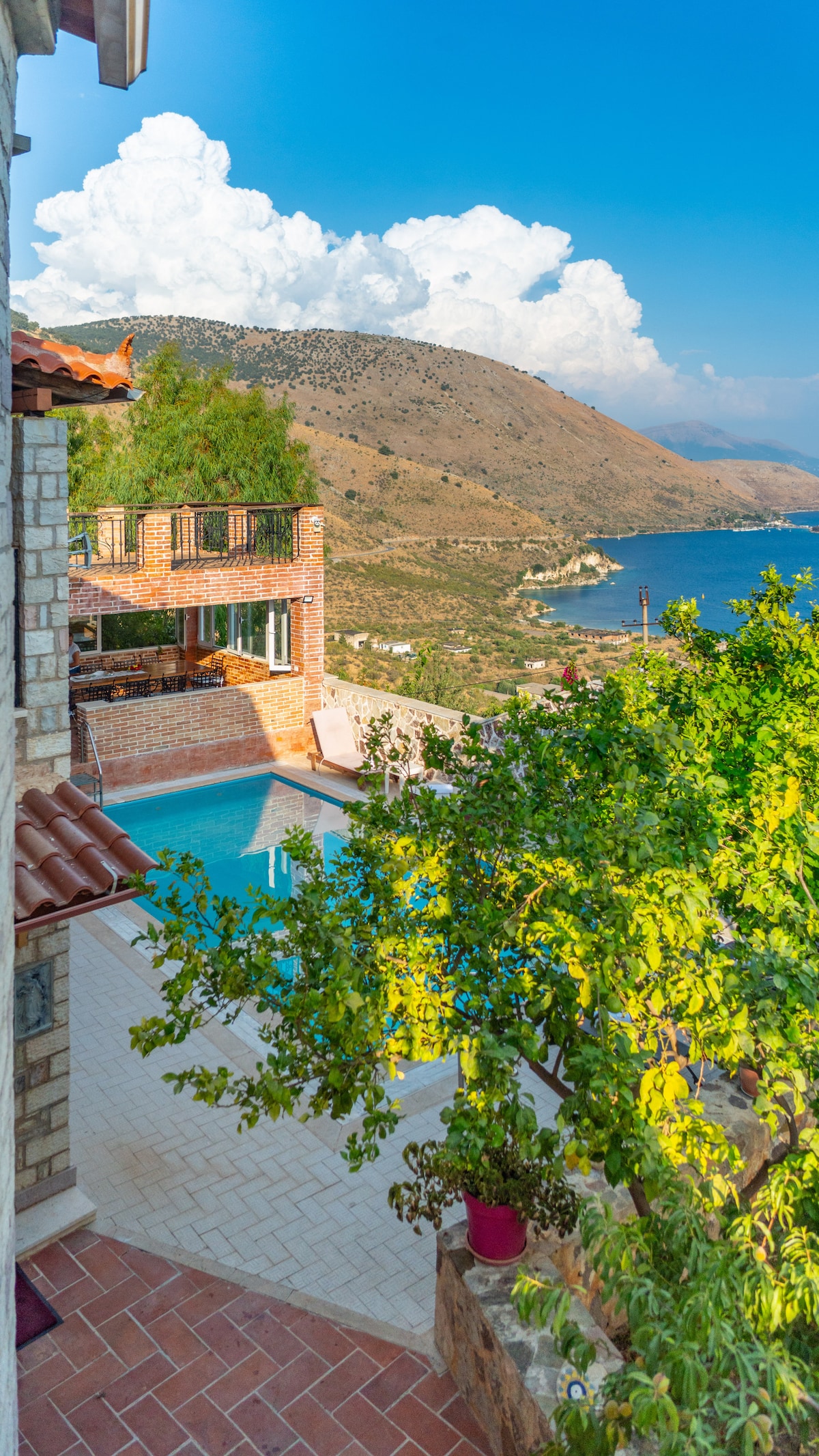 Located in Himare, Vlore, Albania, Ionian Manor Estate is a luxurious villa built in 2018 on the Albanian Riviera. With four spacious bedrooms, five elegant bathrooms, and a fully equipped kitchen, it offers comfort and relaxation. Enjoy the outdoor BBQ area, large pool, and expansive terrace with stunning views of the Ionian Sea. Experience a tranquil atmosphere and modern amenities in one of Albania's most picturesque locations.