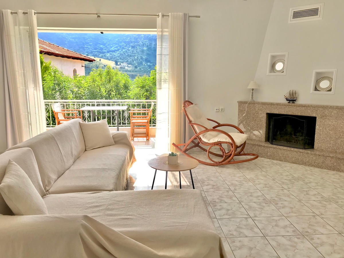 Fully equipped rooms just 5' far from the beach , shops and restaurants . Private kitchen,bathroom and big balcony. Has amazing sea view but also mountain. Located in a peaceful neighborhood in the center of the city and at the same time far from the noise of the car. It's an ideal place for couples and families. The access to the apartment is through stairs as there are only very small streets around. It's a ideal place for relaxing holiday!!!