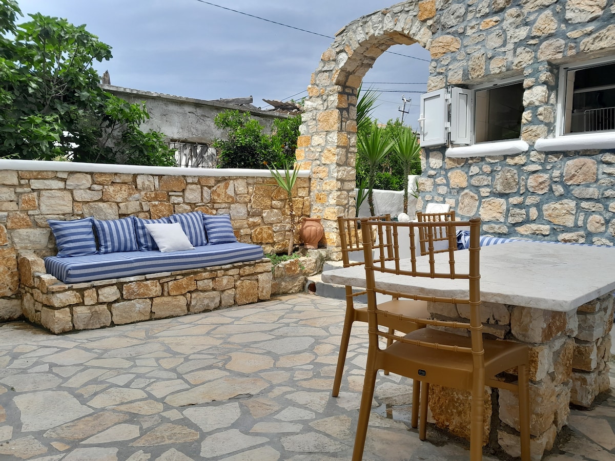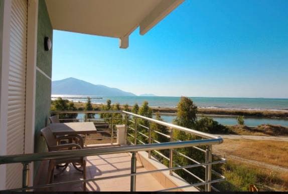A charming and stylish top floor apartment with breathtaking views - the panorama of Karaburun over the bay and captivating Llogara view at entry. Enjoy the utmost comfort and privacy with a queen bed adorned with Greek thick cotton sheets and a delightful canopy. The living room features two single beds, perfect for lounging or sleeping, designer furniture, the beauty of both sunrise and sunset, and a gentle wake-up call of chirping birds. Your unforgettable stay awaits in this retreat.