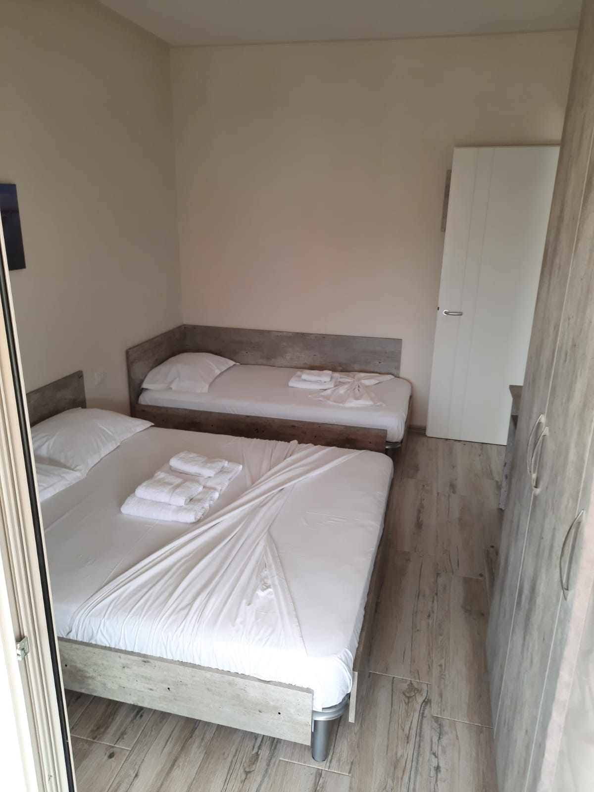 We offer a charming apartment for rent in Ksamil, just 150 meters from the beach. The spacious unit features 4 bedrooms, each with a double bed, a single bed, air conditioning, a refrigerator, a TV, Wi-Fi, and access to a large balcony. With 4 bathrooms and 3 fully equipped kitchens.The outdoor area includes a generous garden, perfect for relaxation, and secure parking on-site . This apartment is ideal for families or groups looking for a memorable seaside getaway! Contact us to book your stay!