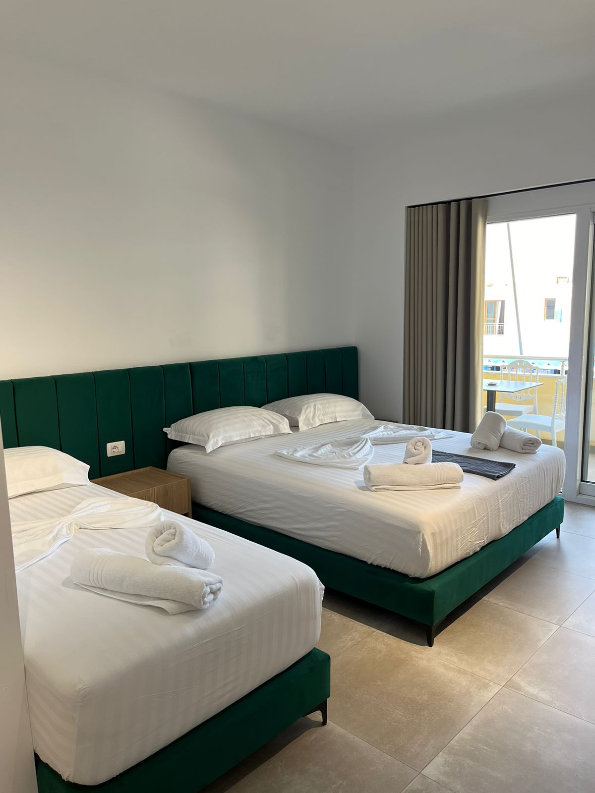 Évadez-vous dans les bleus de l'Adriatique et de la mer Ionienne pour une détente absolue dans notre Azur Room. Savourez le luxe d'un espace privé alliant confort et modernité hôtelière. Face à une pinède et directement sur la Plage, l’immeuble offre un accès immédiat au sable et se situe à proximité de : - Port de Vlora - 1.2 km - Lungomare - 1.5 km - Zone commerçante - 1.5 km - Musée de l’Indépendance - 1.5 km - Vieille Ville - 3 km - Monastère de Zvernec - 7 km - Lagune de Narta 🦩 - 18 km