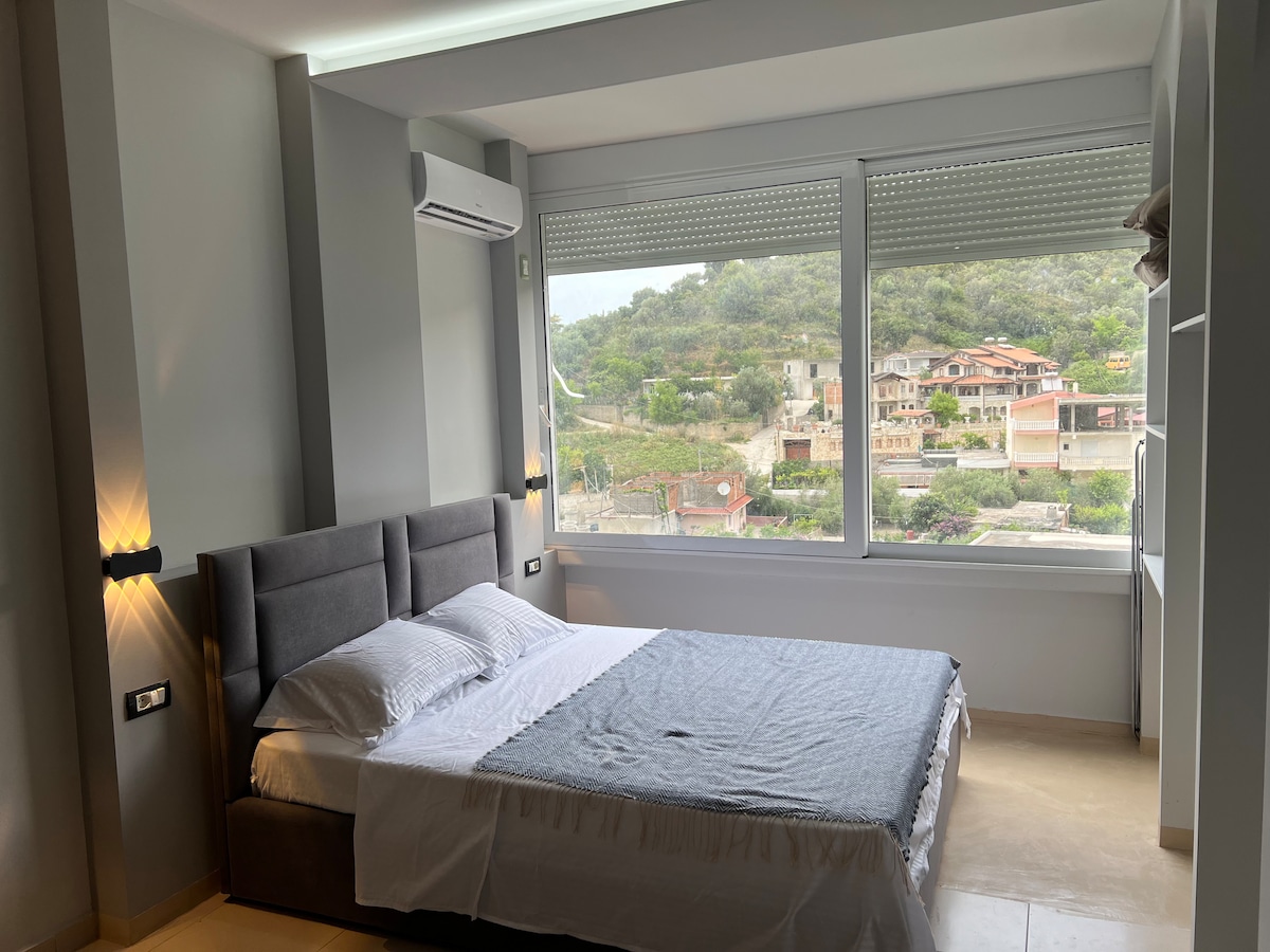 Experience the ultimate in modern luxury at our beautifully furnished apartment, located just 50 meters from the pristine shores of Vlora. Featuring stunning window walls, our apartment offers a breathtaking backdrop for your stay. Enjoy a fully equipped kitchen, high-speed Wi-Fi, air conditioning, and a spacious living area perfect for relaxation or entertaining. Situated in the vibrant Lungomare area, you'll have easy access to the best dining, shopping, and entertainment Vlora has to offer.