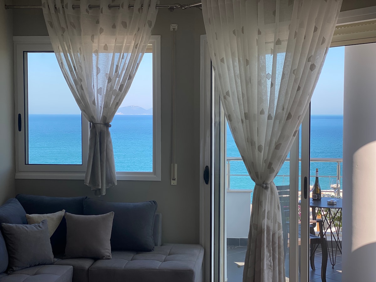 By the seaside, apartment with a perfect view. Sea, sun, moon, mountain, island and peninsula. You just need to go downstairs from the 6 floor, to reach the seaside and a public beach. Calm place, with available public parking spots. Popular points of interest near by include Maison de Chefs Restaurant (same building with the apartment), Manastiri i Zvernecit (9.5 km), Vlora Marina/Lungomare (1 km), Kanine (7 km), Kuzum Baba (3.5 km), Vlora Old Town (3.2 km), Vlora Center (1km)