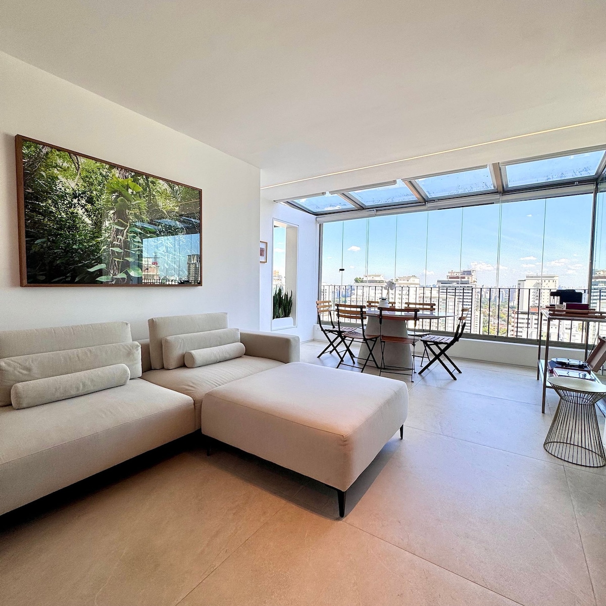 Experience One Eleven in Vila Olimpia. This modern apartment features large windows with breathtaking city views and natural light. The unit boasts 600 Mbps internet and a 4K HD TV. For total comfort, it has a Hot/Cold AC system: 27,000 BTU/h unit in the living room and 10,000 BTU/h in the bedroom. The bedroom is quiet and dark for a restful sleep. Impeccably maintained, you’ll be walking distance to top restaurants and business hubs—a safe, upscale retreat with a stunning urban backdrop.