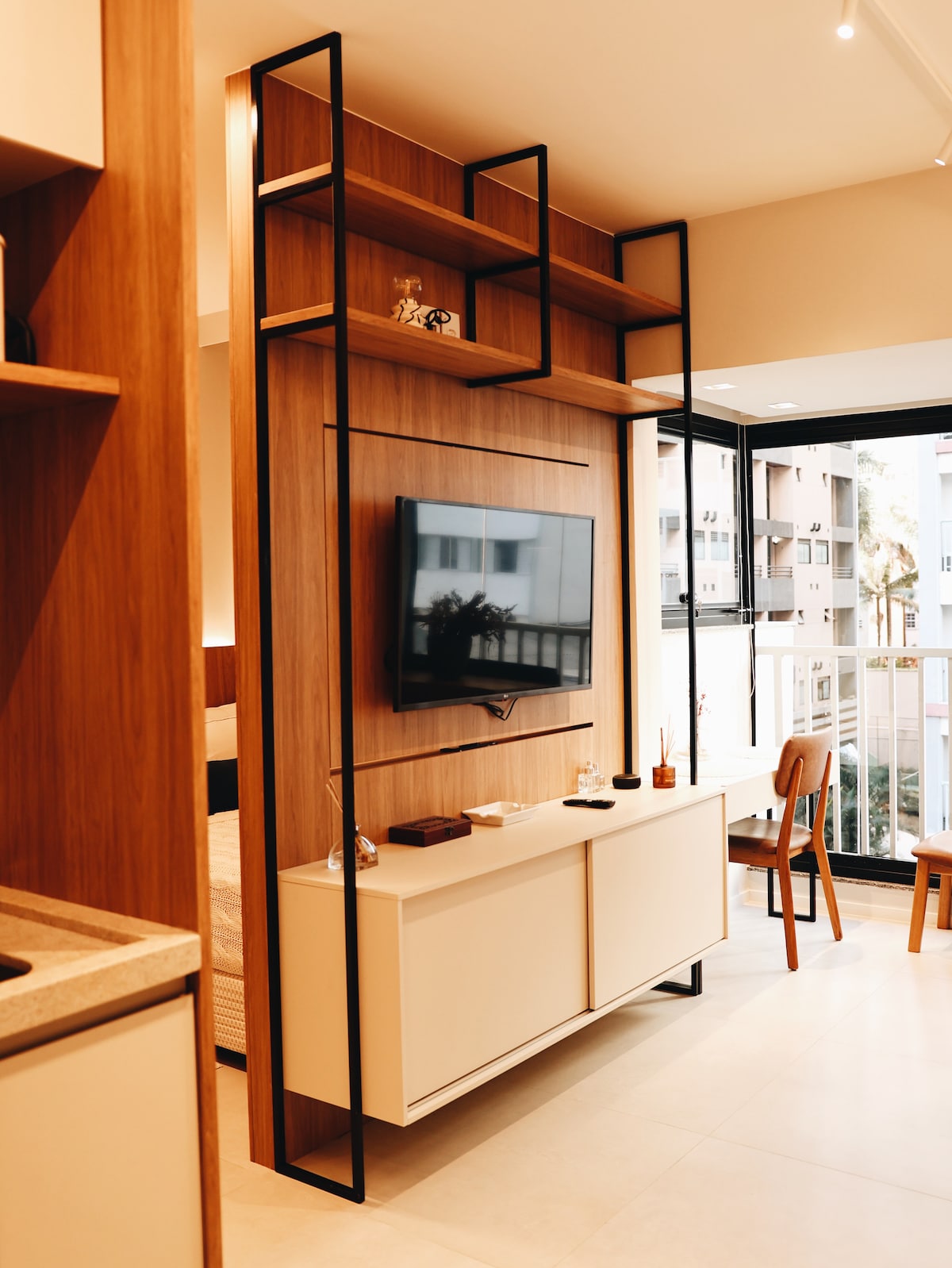 Apto moderno de 1 dorm, sala de estar com sofá-cama e cozinha na varanda! Com ótima localização em Pinheiros (bairro mais hypado de SP), é perfeito pra quem busca estar em uma ótima região que te permite caminhar até o metrô (estação Pinheiros na esquina e Faria Lima a 10min), restaurantes e bares. Aproveite pra curtir o pôr do sol com vista para o Rio Pinheiros enquanto toma um drink ou cozinha na varanda. Condomínio incrível com piscina interna e externa, estacionamento, academia e tênis.