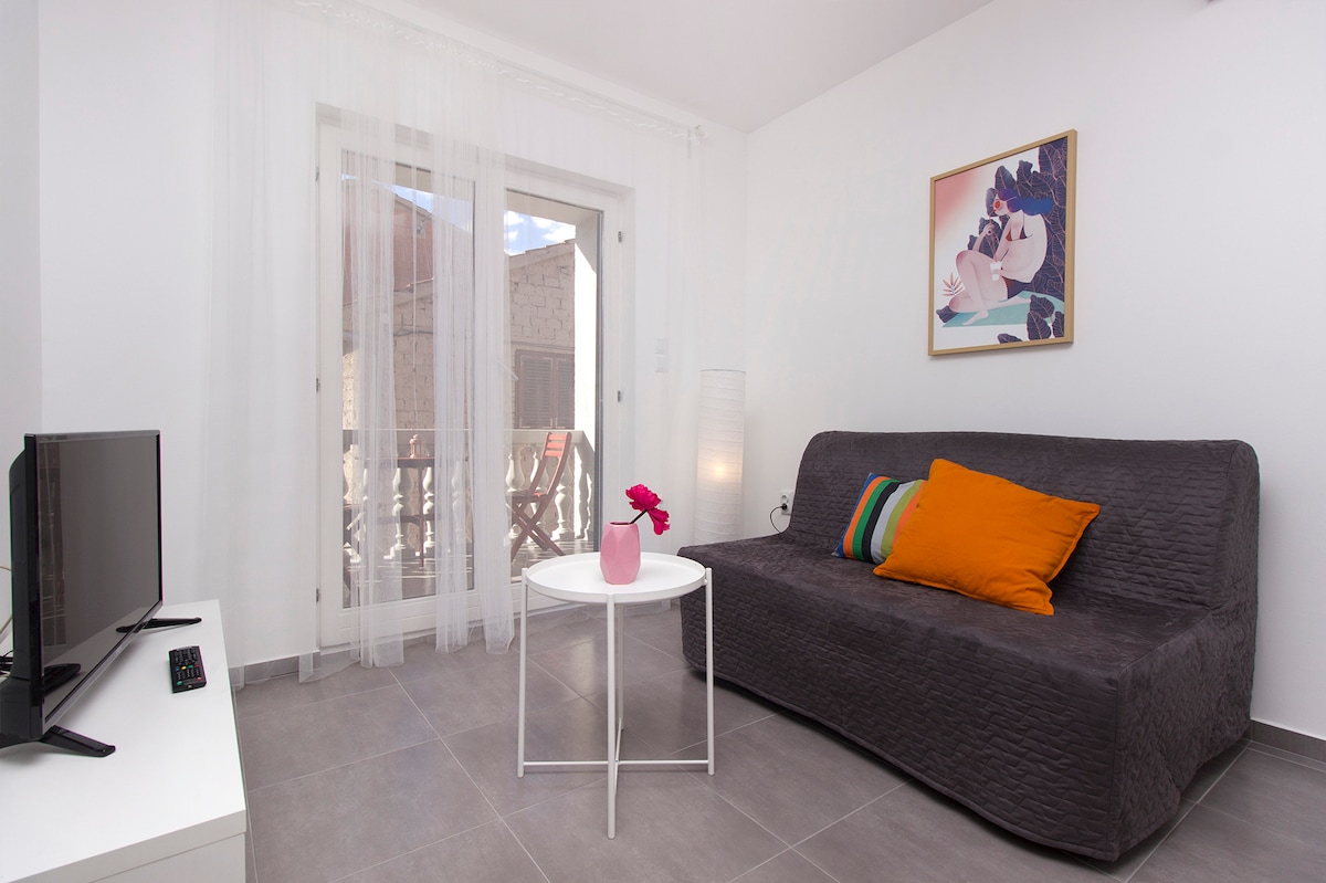 Cozy apartment near the city center (5 min walk) and the city beach (10 min walk). The main Bus station is a 5 minute walk from the apartment. It has a balcony that is connected to the apartment. The parking in front of the house is free. The use of air conditioner is free. Alongside apartment Lea we have the apartment Lu that is located just next door. In case of one apartment being occupied it could be possible to reserve the other one.