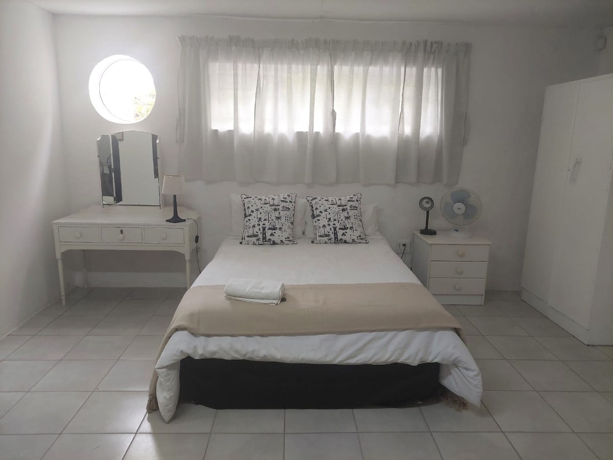 Centrally located in Onrus, the self-catering flatlet is a 15 min walk from Onrus Beach, tidal pools, coastal path, shopping centre, restaurants. Quiet & safe neighbourhood; secure garage parking; motorised gate shared with host; private ground floor entrance; staircase leading to compact open-plan flat. Kitchenette well equipped (no oven). Large north-facing window, with view of Onrus mountains. King-sized bed. Ideal for 1-2 travellers looking for a comfortable breakaway.