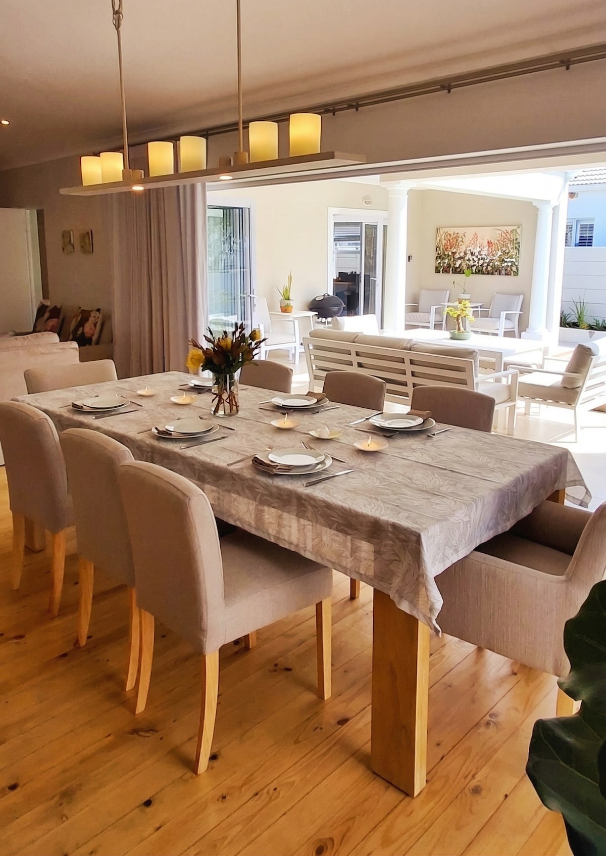 Nuwe Lingen Luxury Accommodation is a stylish 3-bedroom, 3-bathroom holiday home in Eastcliff, Hermanus, ideal for families or groups of up to 8. Enjoy a cozy indoor fireplace, private splash pool, and shaded outdoor braai area for relaxed afternoons. Quietly located yet within walking distance of the cliff path, restaurants, markets, beaches, and the town centre — a comfortable, well-located base for exploring the Whale Coast.