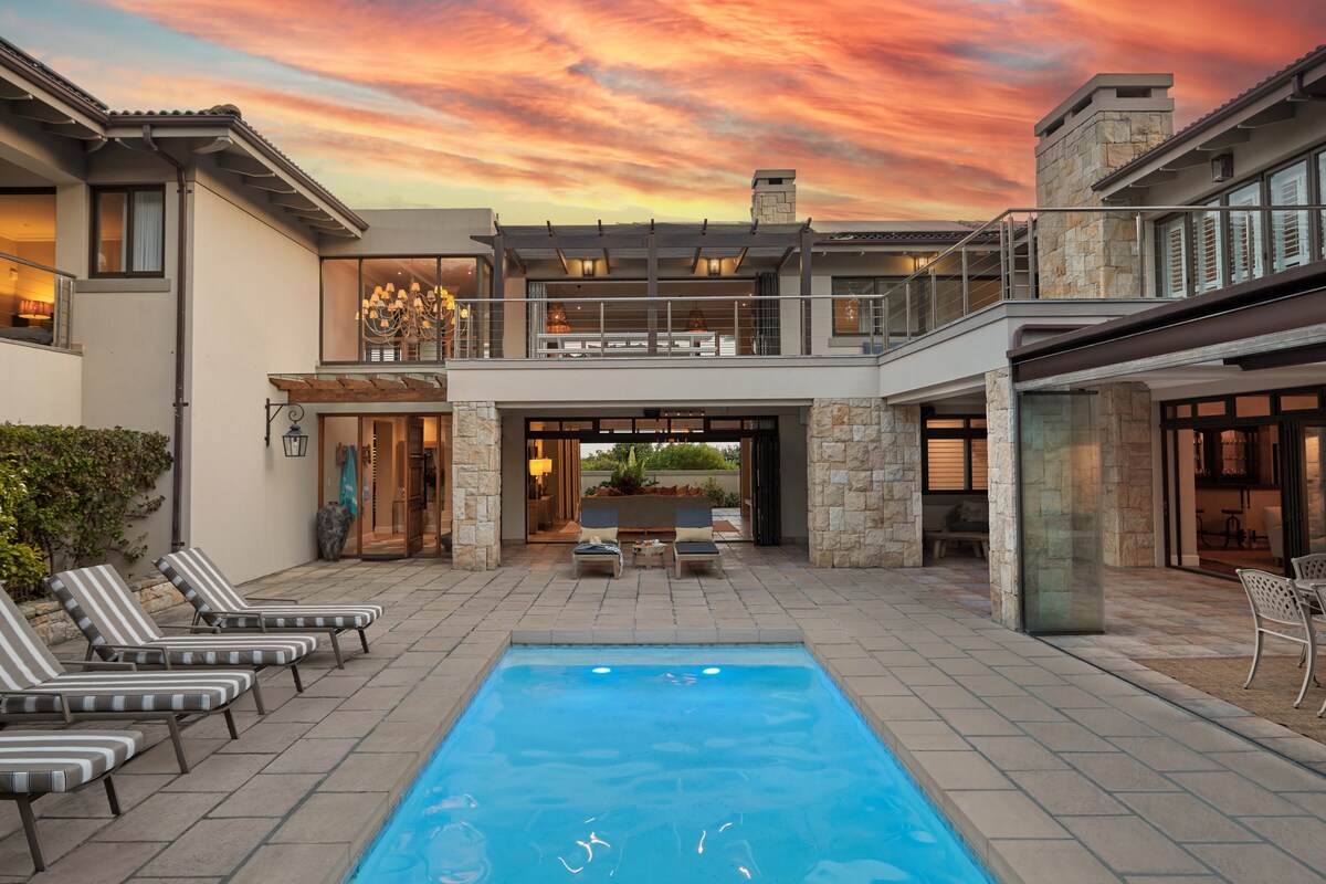 Architecturally designed dream home that allows for comfort, views and easy seaside living. Now with back up power interter. The pool, sunny decks and balconies with sea views will lure you away from the nearby beaches and restaurant just minutes away. Watch whales from your balcony, relax in the BBQ room, play in the games room or on the jungle gym, explore central Hermanus or go further to Stanford, the wine route, shark-cage diving in Gansbaai or magnificent Route 44