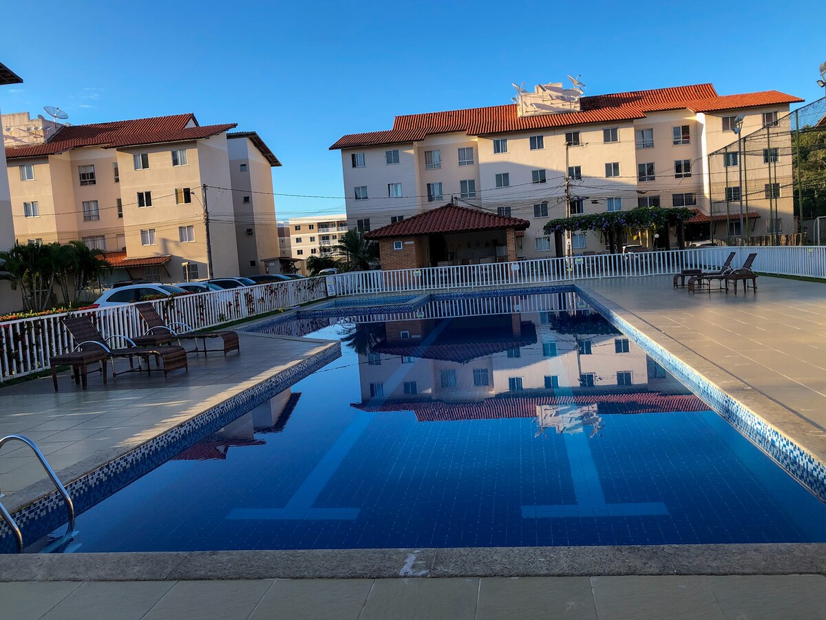 Apartamento térreo, possui 2 quartos com ar, 1 banheiro, sala de jantar, cozinha, área de serviço e 1 vaga de garagem. O condomínio dispõe de piscina (fechada na segunda para manutenção), academia, sauna, salão de jogos e quadra de esportes. Disponibilizamos roupa de cama e banho, utensílios de cozinha, ferro de passar, secador de cabelo e sabonete. O Apê está situado a 200 m da Praia dos milionários, 4 km do Aeroporto e a 10 min do centro histórico da cidade. Será um prazer receber vocês!
