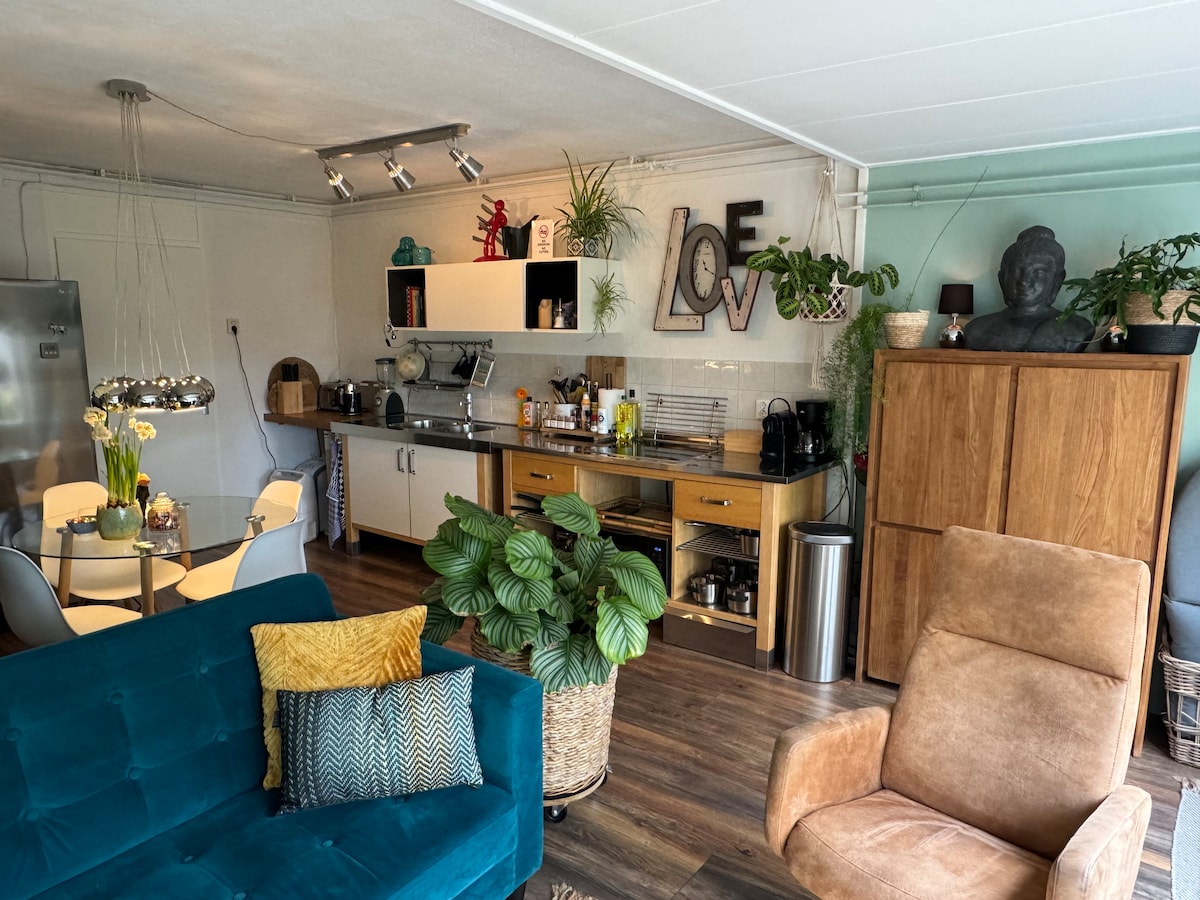 Dit charmante en knusse verblijf met stijlvolle inrichting, is centraal gelegen tussen Amsterdam, Rotterdam, Den Haag, Leiden en het strand. Alles op 30 minuten rijden. Er is een eigen entree. Men komt binnen op de begane grond. Hier is een privé toilet, privé badkamer en wasmachine. Boven zijn twee kamers, een slaapkamer met flatscreen TV (Netflix en YouTube ), ontbijt/werkkamer en kledingkast. Op de overloop bevindt zich de oven/magnetron, Nespresso apparaat, waterkoker en koelkast.